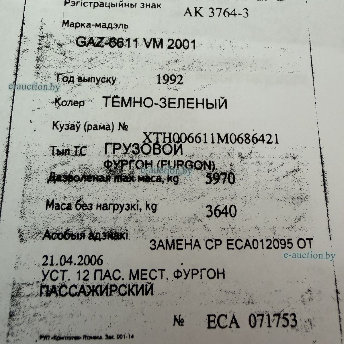 | Контакты организатора аукциона | +375259111956 |