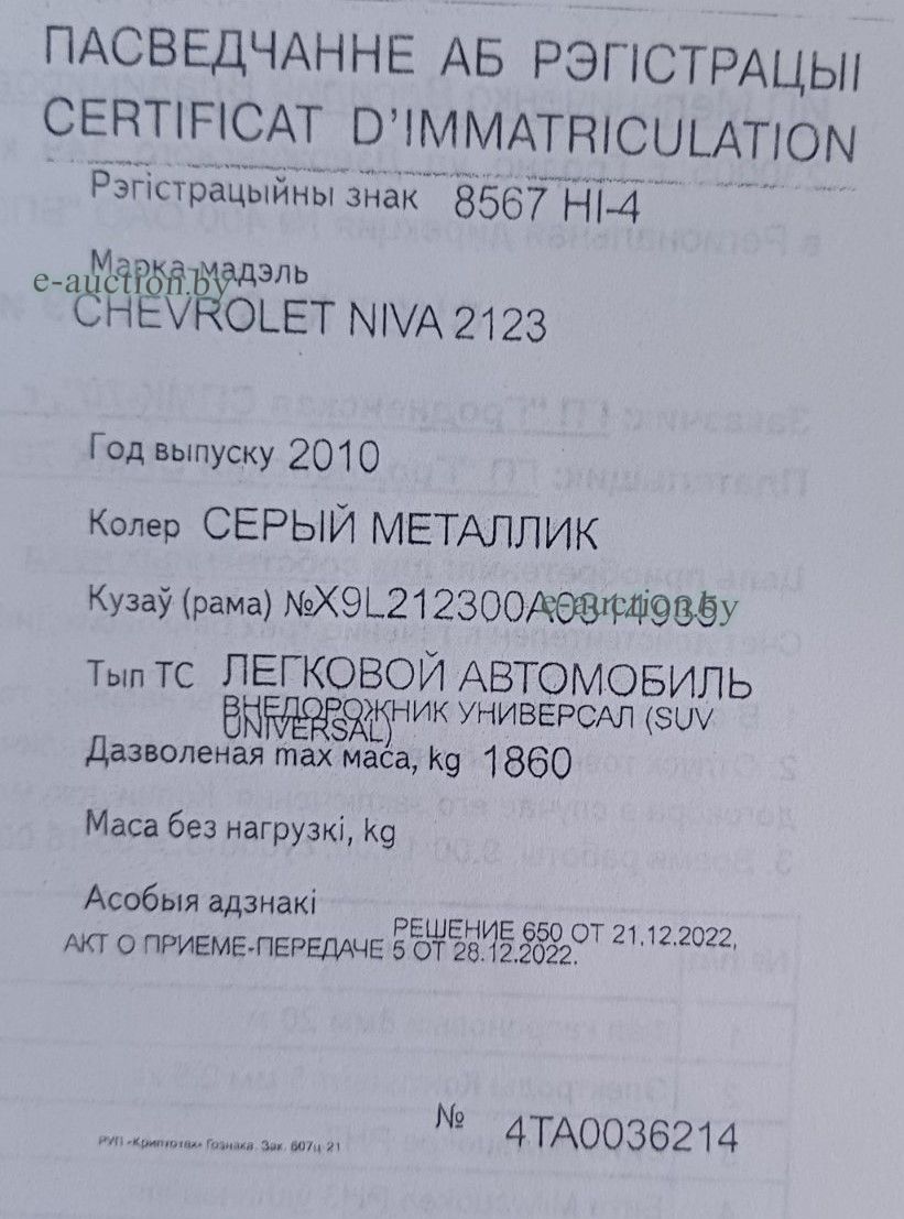 | Контакты организатора аукциона | +375291838264 |