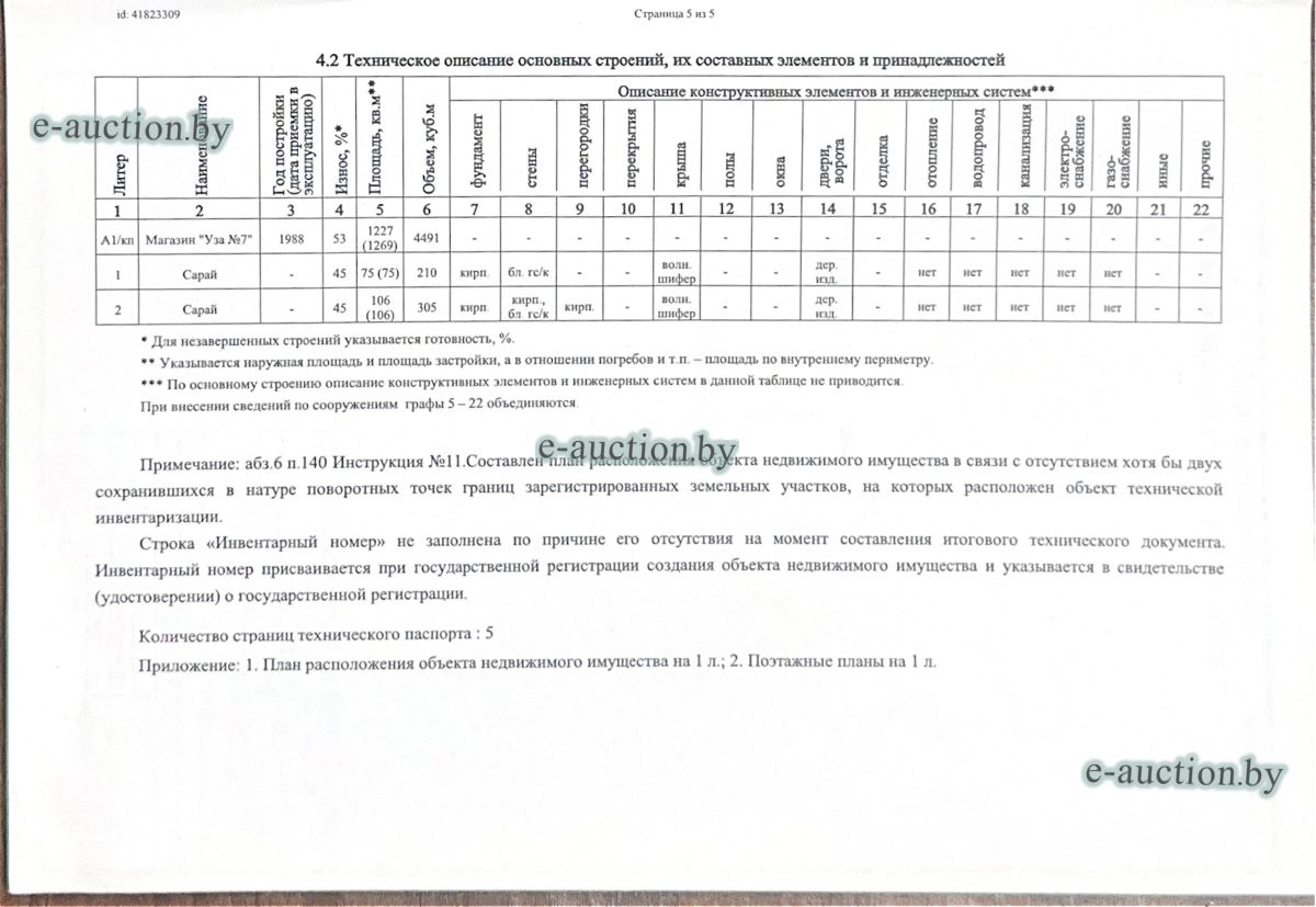 Сведения о капитальном строении: Наименование: Магазин "Уза №7" Назначение: Здание специализированное розничной торговли Составные части и принадлежности: А1/кп - Магазин "Уза №7", 1 - сарай, 2 - сарай Сведения о земельном участке: Кадастровый номер земельного участка, на котором расположено капитальное строение: 320584003601000527 площадью 0.3773 га (право аренды по 01.07.2123) Целевое назначение земельного участка: Земельный участок для содержания и обслуживания здания магазина (земельный участок для размещения объектов розничной торговли) Назначение земельного участка в соответствии с единой классификацией назначения объектов недвижимого имущества: Земельный участок для размещения объектов розничной торговли. |