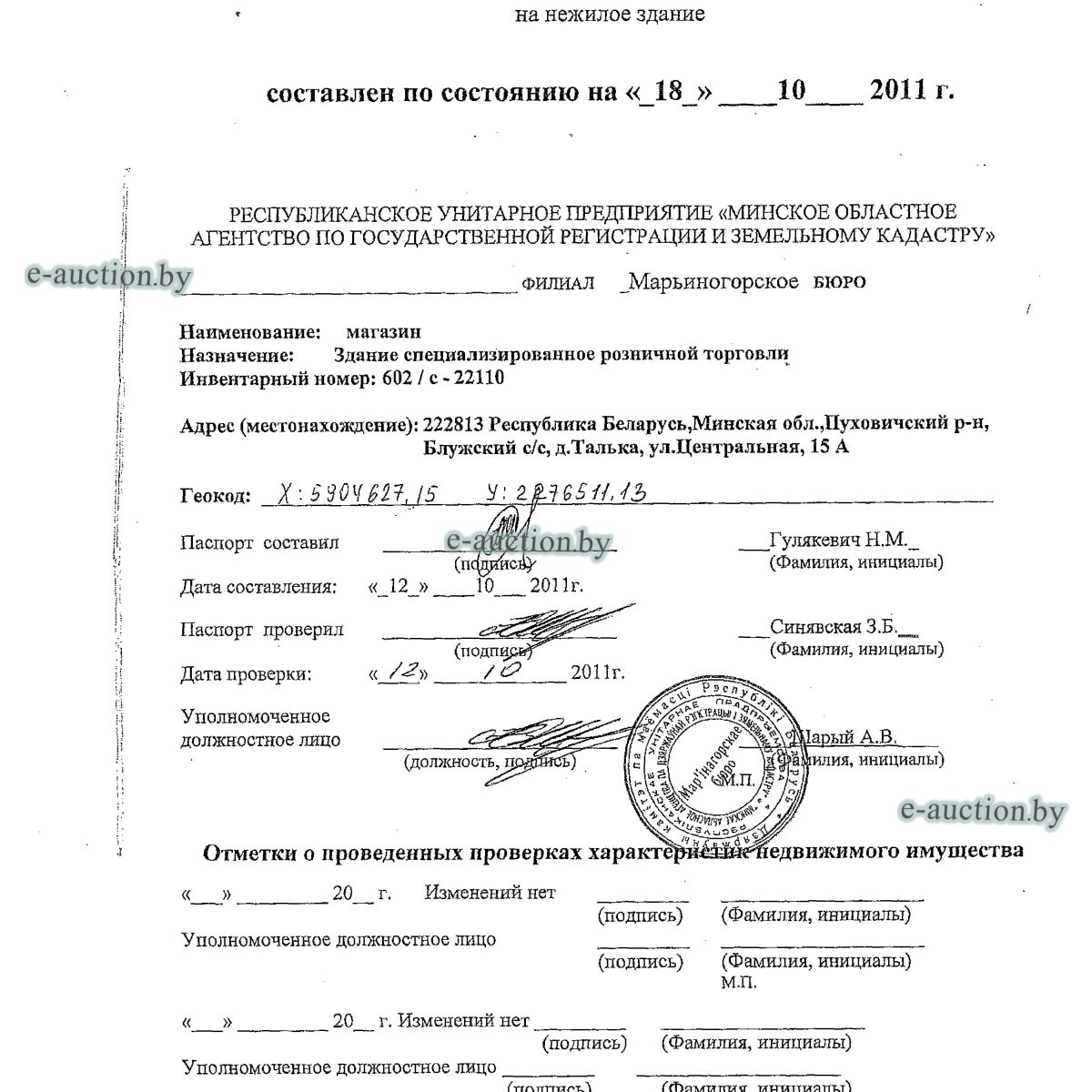 | Местоположение имущества | Минская область, Пуховичский р-н, д. Талька, ул. Центральная, 15А |