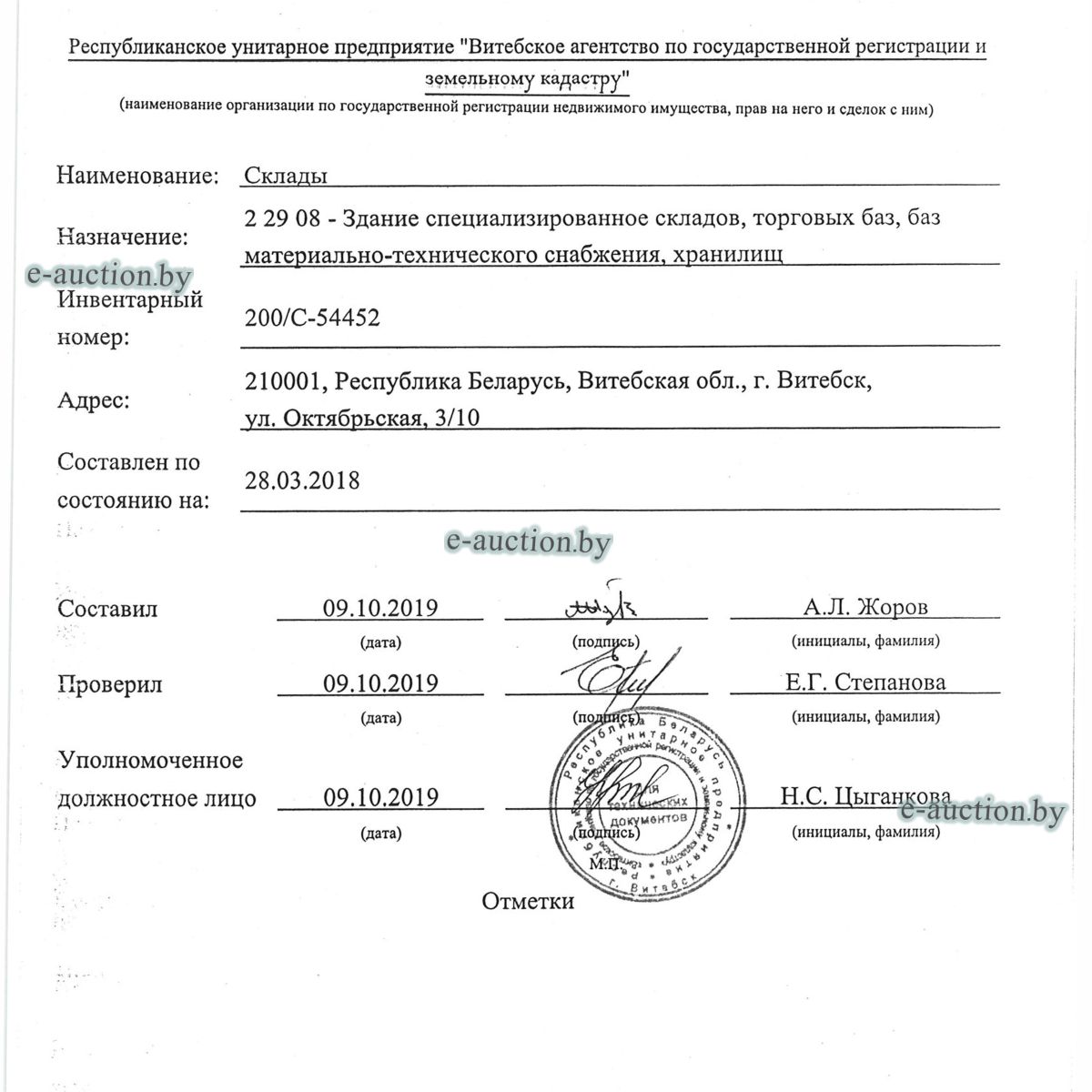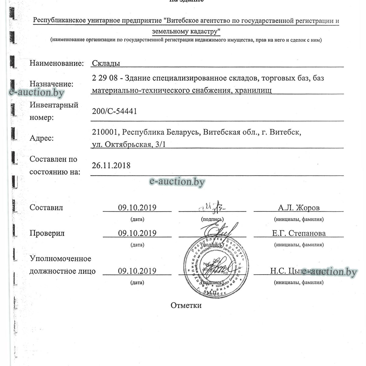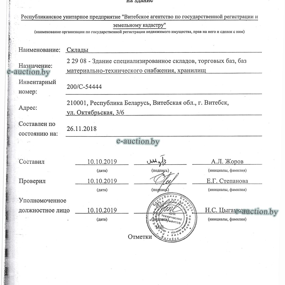 | Местоположение имущества | г. Витебск, ул. Октябрьская, 3 |