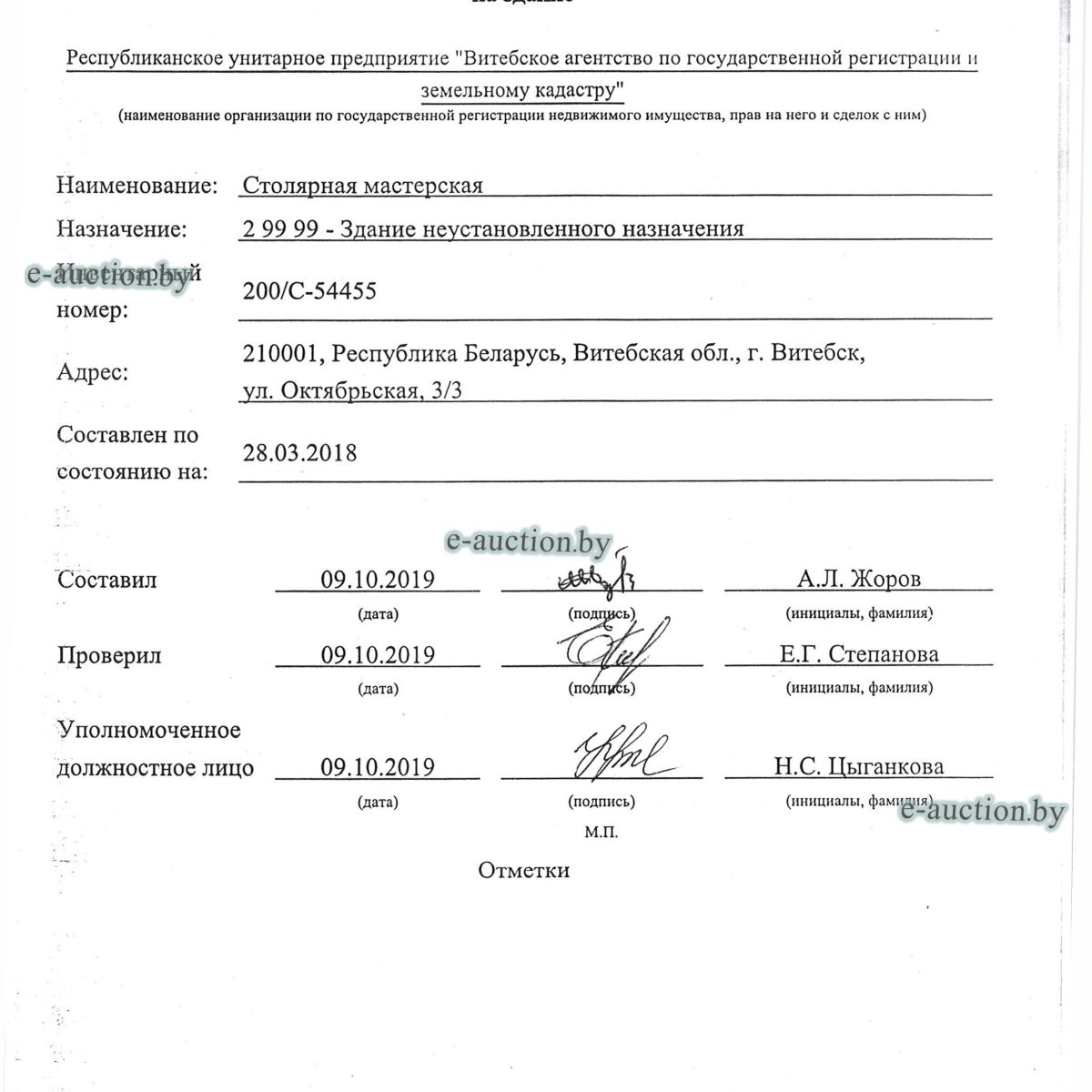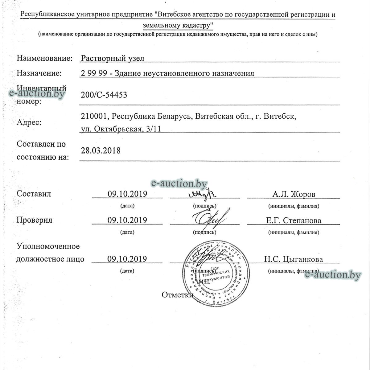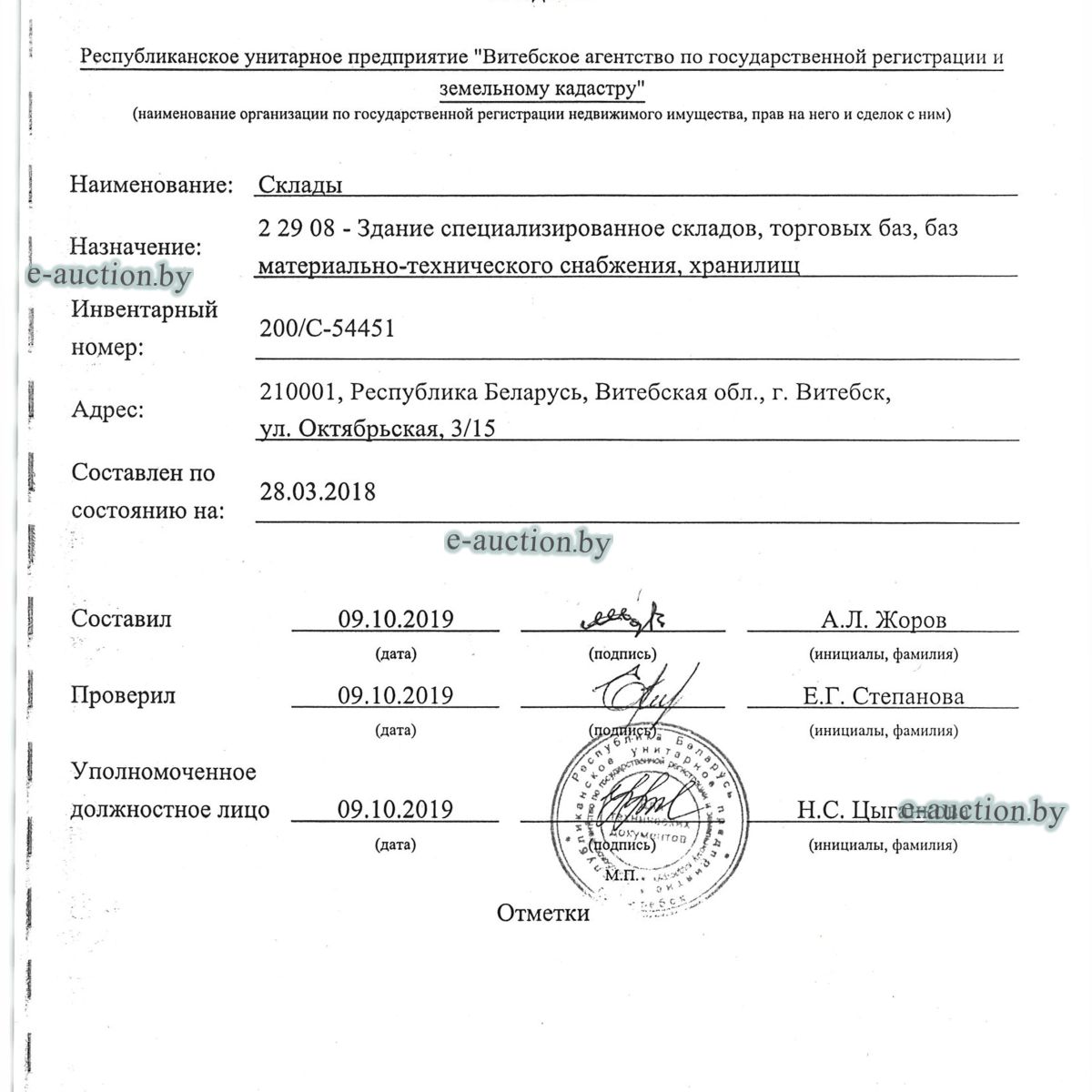 | Местоположение имущества | г. Витебск, ул. Октябрьская, 3 |