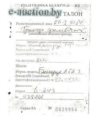 Рег. знак ЕВ-3 5184. Зав. №72001390. Инв. №064010. Задняя навеска в комплект поставки не входит. Начальная стоимость с НДС. Покупатель самостоятельно или силами собственных специалистов, спецтехники (при необходимости) осуществляет самовывоз приобретенного имущества. |