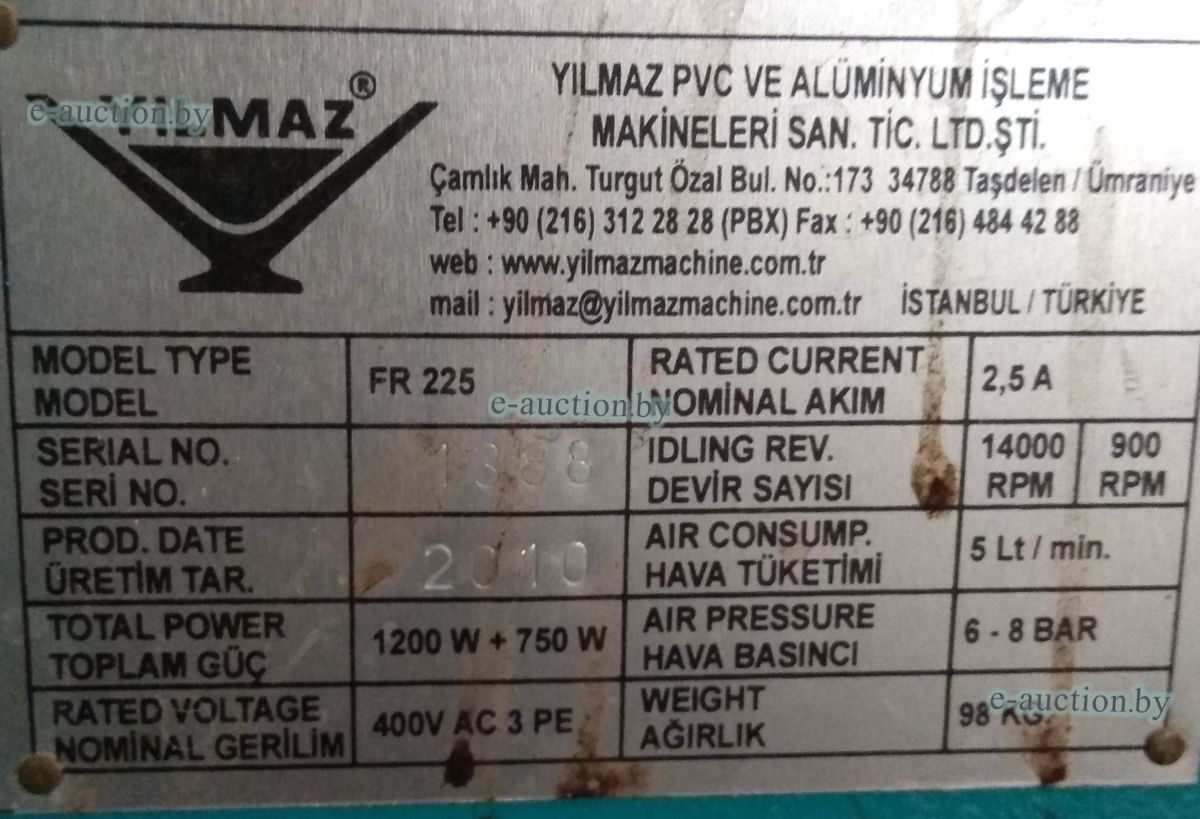 Комплект оборудования для производства окон ПВХ: Начальная стоимость указана без НДС. |