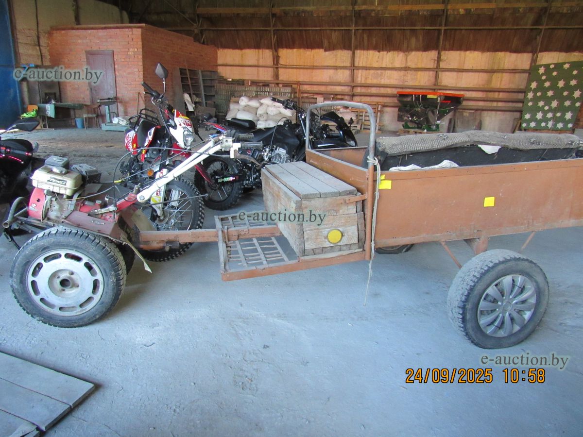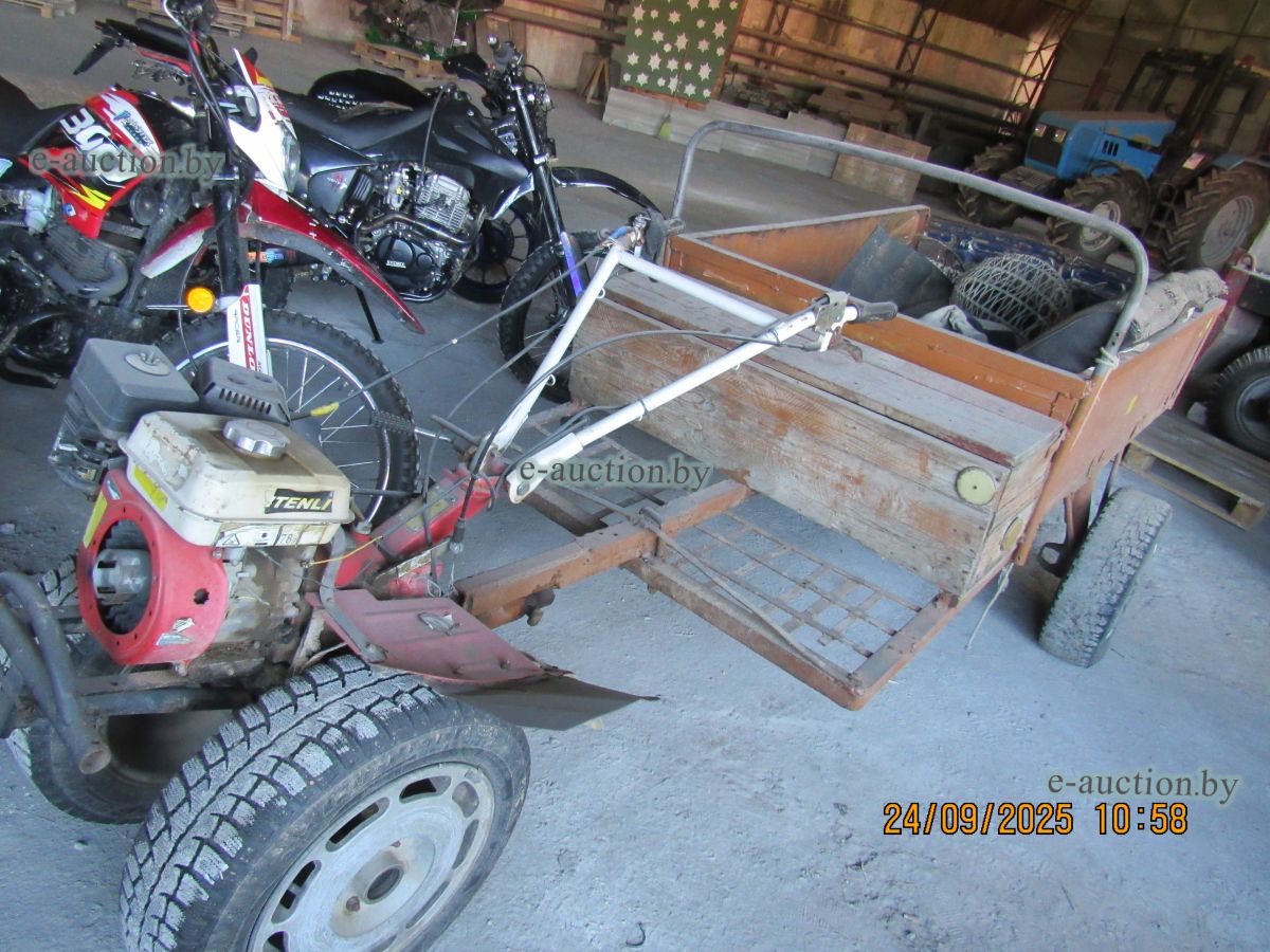 Бывшее в употреблении, комплектность и работоспособность не проверялась. В комплекте с самодельным прицепом и фрезой. |