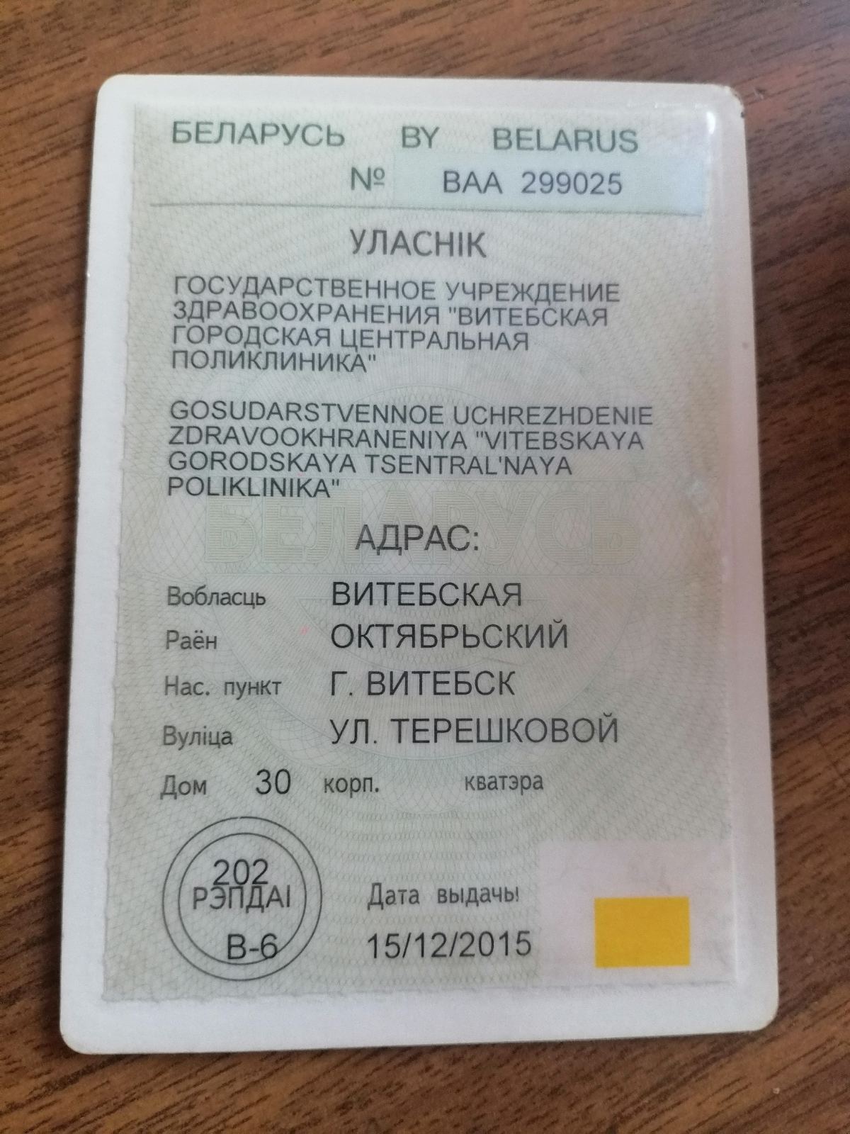 | Наименование | Государственное учреждение здравоохранения «Витебская городская центральная поликлиника» |