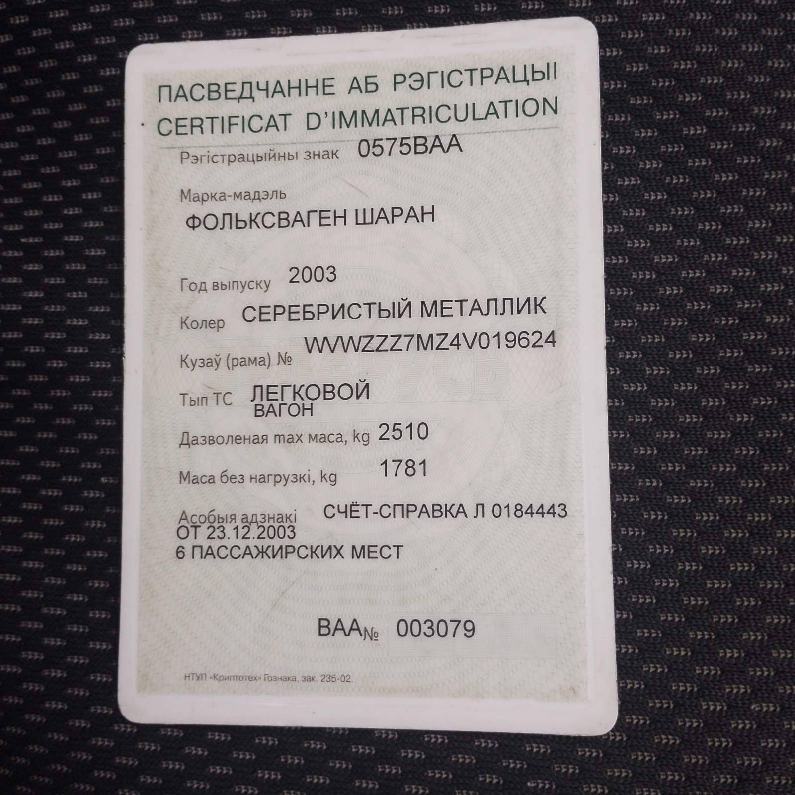 Легковой автомобиль Volksvagen Sharan, вагон, 2003 года выпуска, кузов (рама) №WVWZZZ7MZ4V019624. Цена указана с НДС. |
