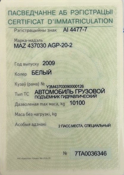 Автомобиль грузовой подъемник гидравлический MAZ 437030 AGP-20-2. Цена указана с учетом НДС. |