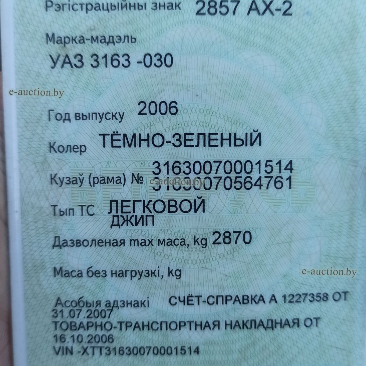 | Реквизиты | ОПИ УПИ главного управления юстиции Витебского облисполкома, УНП: 300002505, р/c BY73AKBB36429030010372000000 в ОАО «АСБ Беларусбанк», БИК AKBBBY2X |