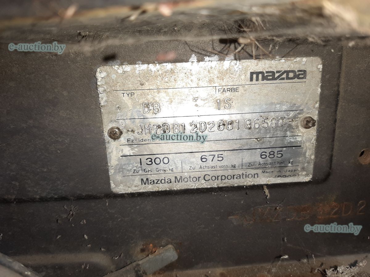 Рег. знак 3353 ЕТ-3 Кузов (рама): JMZDB12D200106587 (указан в соответствии с предоставленными документами) Имеются повреждения ЛКП. Сквозная коррозия кузова в нижней части поверхности, разрушение мягкого верха кузова. Шины имеют предельный износ. Салон разукомплектован. При инструментальном контроле, диагностике, разборке возможно выявление скрытых дефектов и неисправностей. |