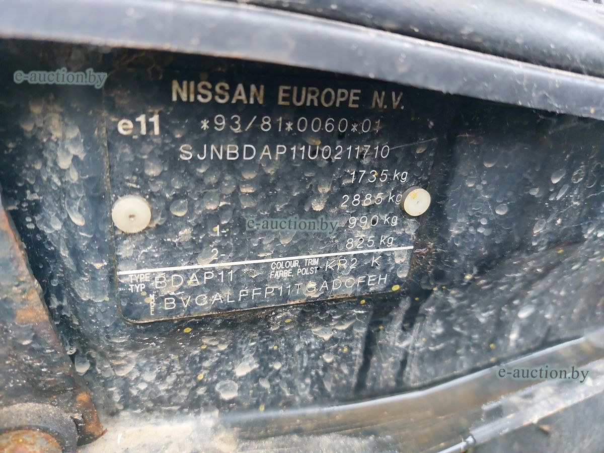 Рег. знак 3346 КЕ-3 Кузов №SJNBDAP11U0211710 Имеются повреждения ЛКП, коррозия. При инструментальном контроле, диагностике, разборке возможно выявление скрытых дефектов и неисправностей. |