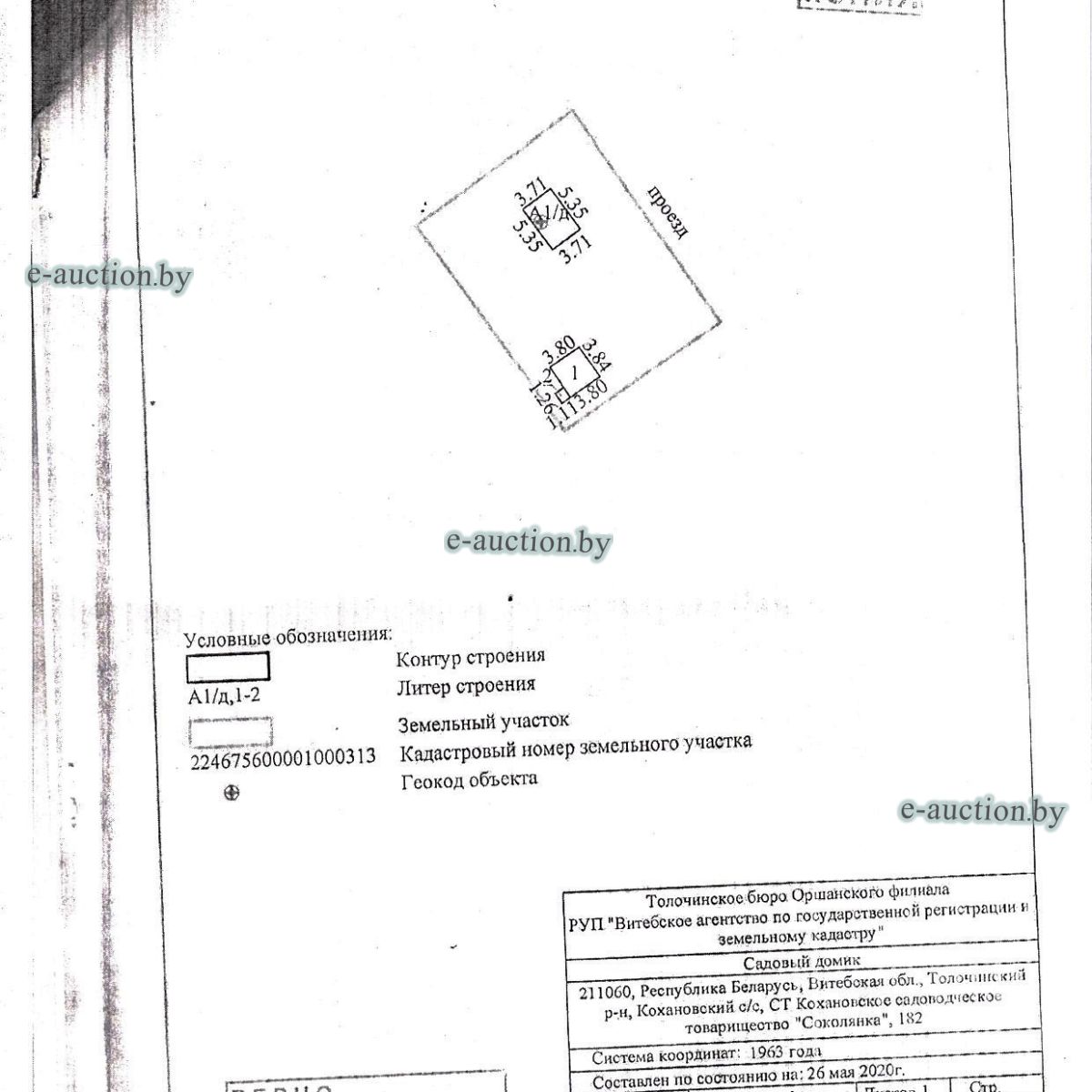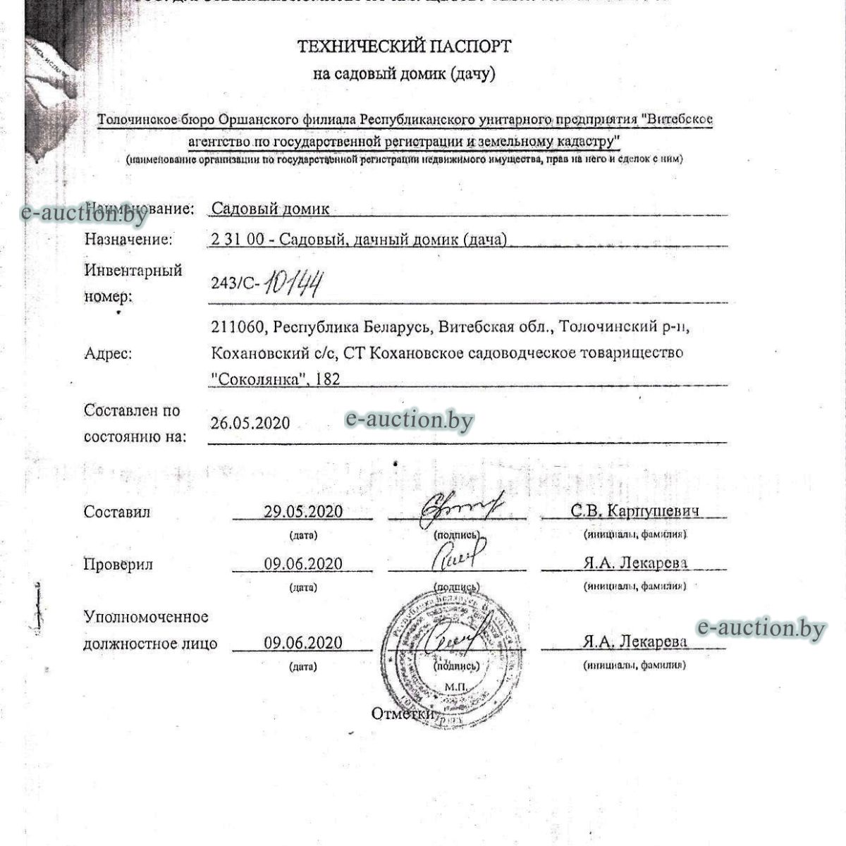 | Местоположение имущества | Витебская область, Толочинский р-н, Кохановский с/с, СТ Кохановское садоводческое товарищество "Соколянка", 182 |