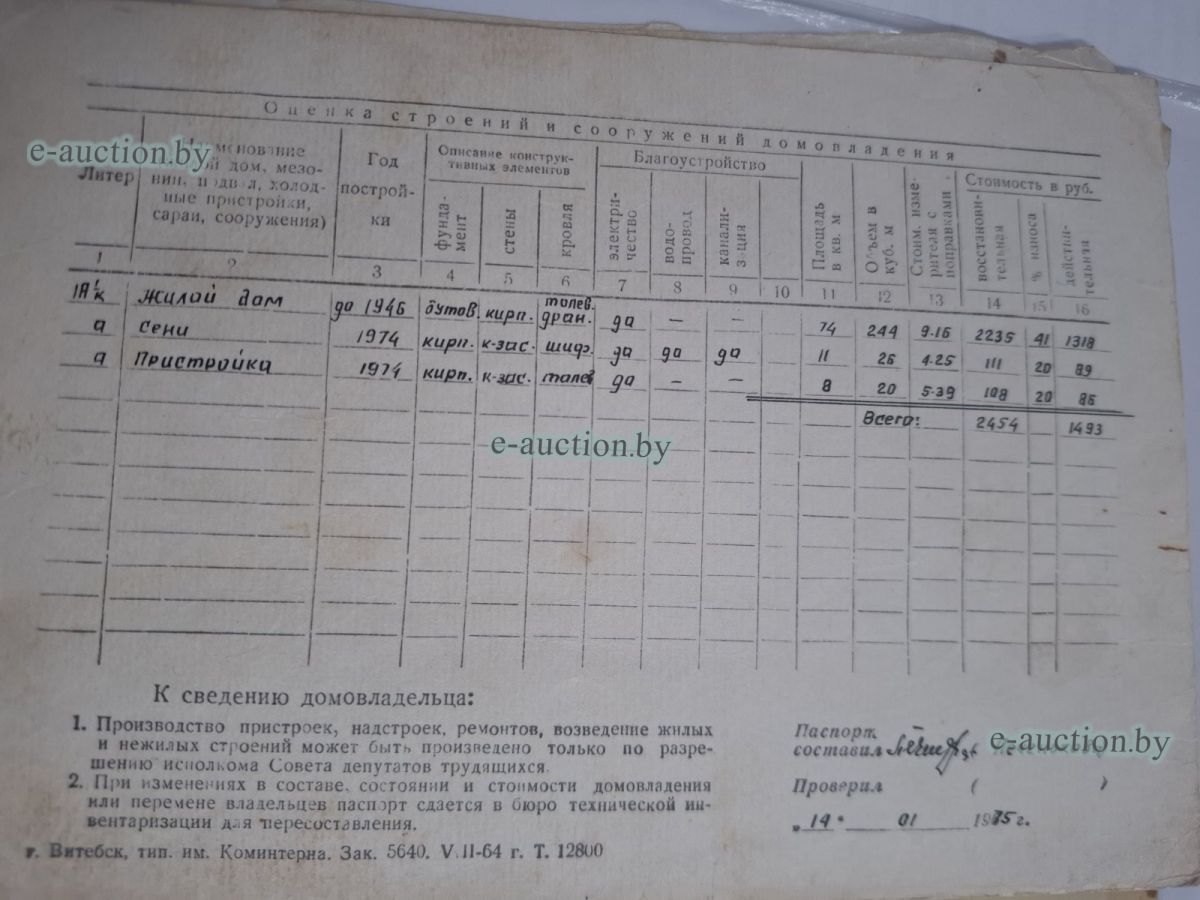 Сведения о капитальном строении из ЕГРНИ: Наименование: одноэтажный кирпичный жилой дом; Назначение: здание одноквартирного жилого дома; Составные части и принадлежности: с пристройкой и сенями. Принадлежит должнику на праве собственности. Расположено на земельном участке с кад. № 240100000002006676 площадью 0.0421 га (право аренды). Целевое назначение земельного участка: Земельный участок для строительства объекта "Реконструкция нежилого здания № 28 по ул. Комсомольской (памятник архитектуры - застройка ул. Комсомольской 13/6, 28, 30, 32/16 конца XIX -начала XX века) и нежилого здания № 26 по ул. Комсомольской в г. Витебске под размещение гостиницы "Бристоль" Назначение земельного участка в соответствии с единой классификацией назначения объектов недвижимого имущества: земельный участок для размещения объектов гостиниц, мотелей, кемпингов. Ограничения (обременения) прав на земельные участки, расположенные в водоохранных зонах рек и водоемов (река Западная Двина), площадь 0.0421 га. Ограничения (обременения) прав на земельные участки, расположенные в охранных зонах линий связи и радиофикации, площадь 0.0074 га. Ограничения (обременения) прав на земельные участки, расположенные в охранных зонах линий связи и радиофикации, площадь 0.0073 га. Ограничения (обременения) прав на земельные участки, расположенные в охранных зонах линий связи и радиофикации, площадь 0.0020 га. Ограничения (обременения) прав на земельные участки, расположенные в охранных зонах линий связи и радиофикации, площадь 0.0011 га. Ограничения (обременения) прав на земельные участки, расположенные в охранных зонах электрических сетей свыше 1000 В, площадь 0.0007 га. Ограничения (обременения) прав на земельные участки, расположенные в охранных зонах объектов газораспределительной системы, площадь 0.0068 га. |