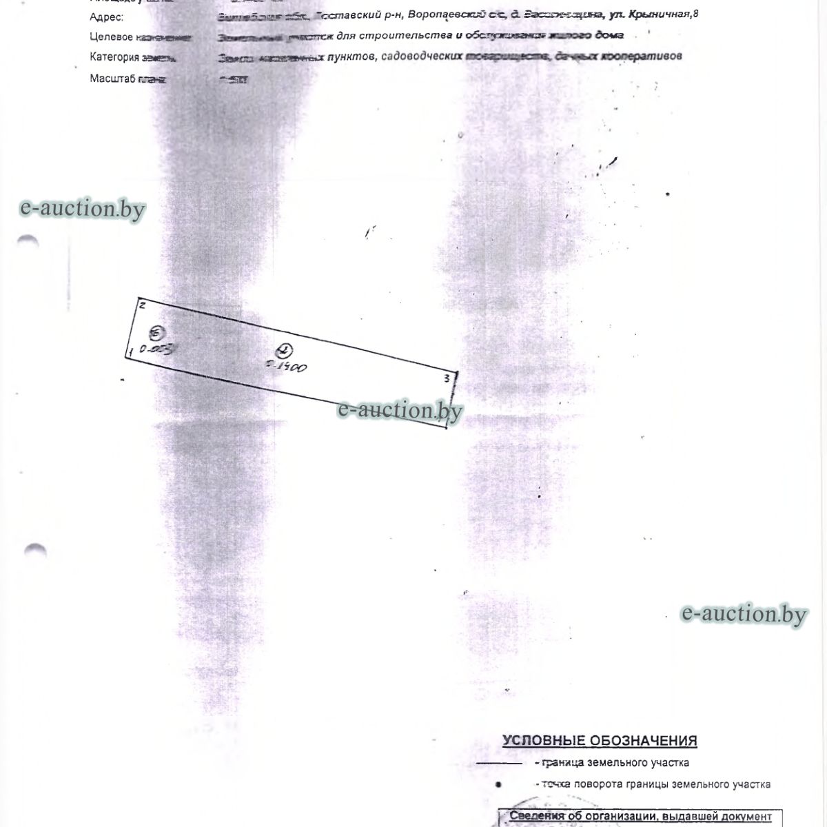 | Местоположение имущества | Витебская область, Поставский р-н, Воропаевский с/с, д. Василевщина, ул. Крыничная, 8 |