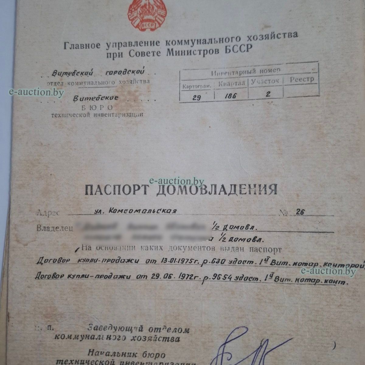 | Местоположение имущества | г. Витебск, ул. Комсомольская, д. 26 |