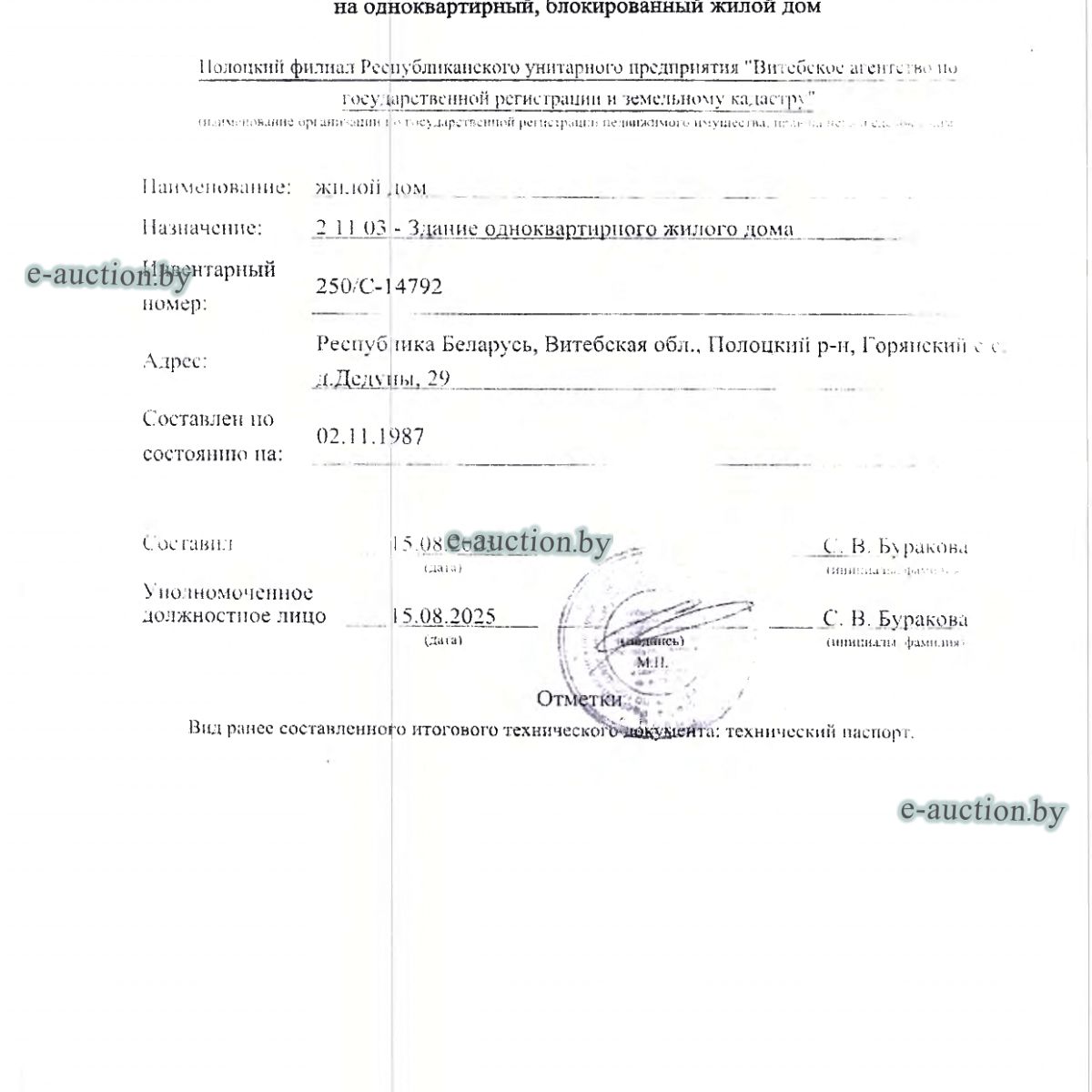 | Местоположение имущества | Витебская область, Полоцкий р-н, Горянский с/с, д. Дедуны |