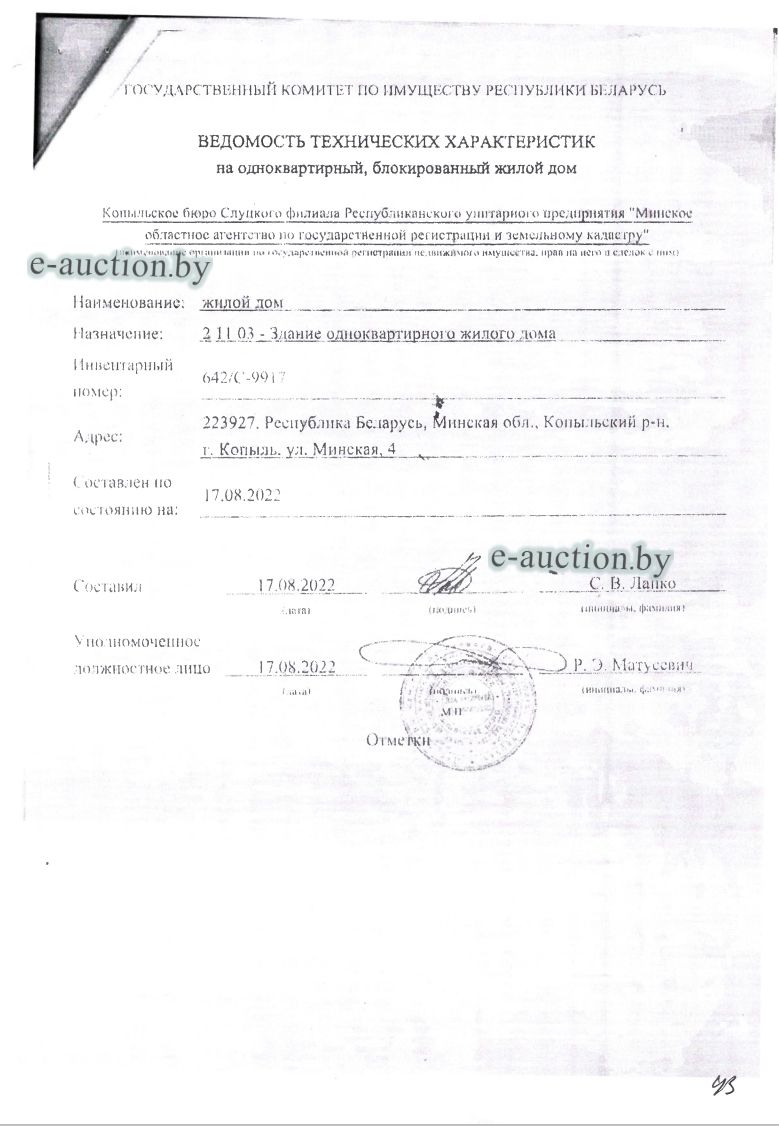 | Местоположение имущества | Минская область, Копыльский р-н, г. Копыль, ул. Минская, 4 |