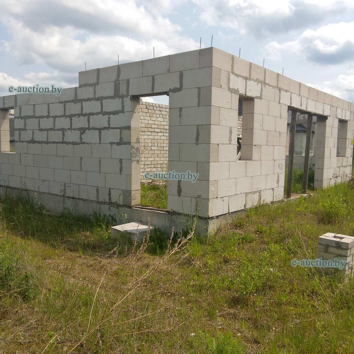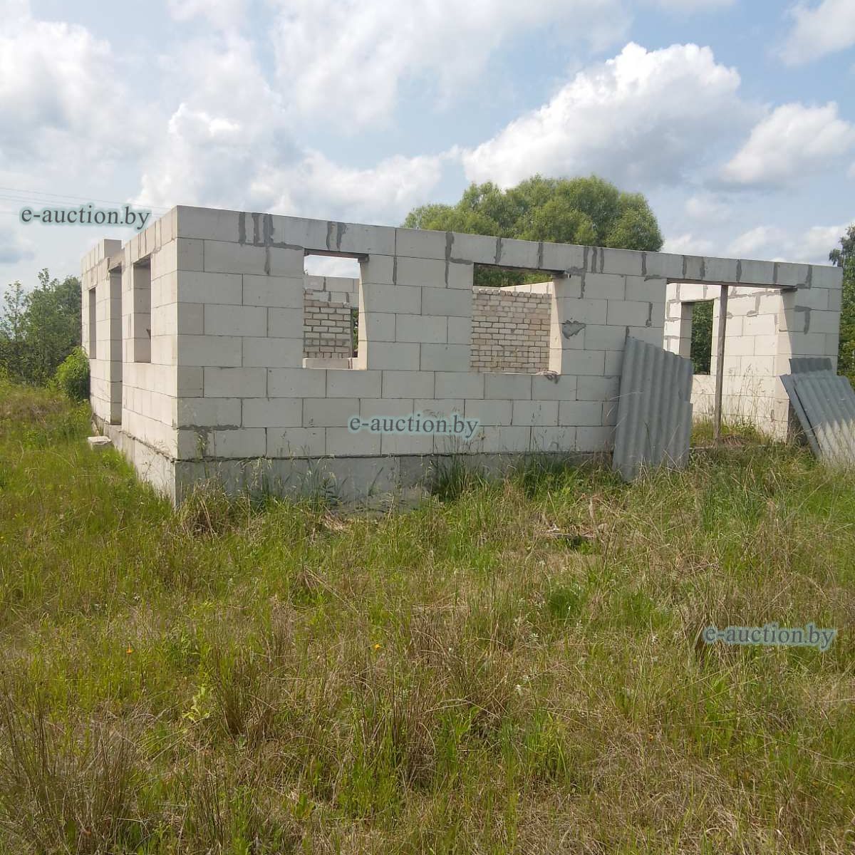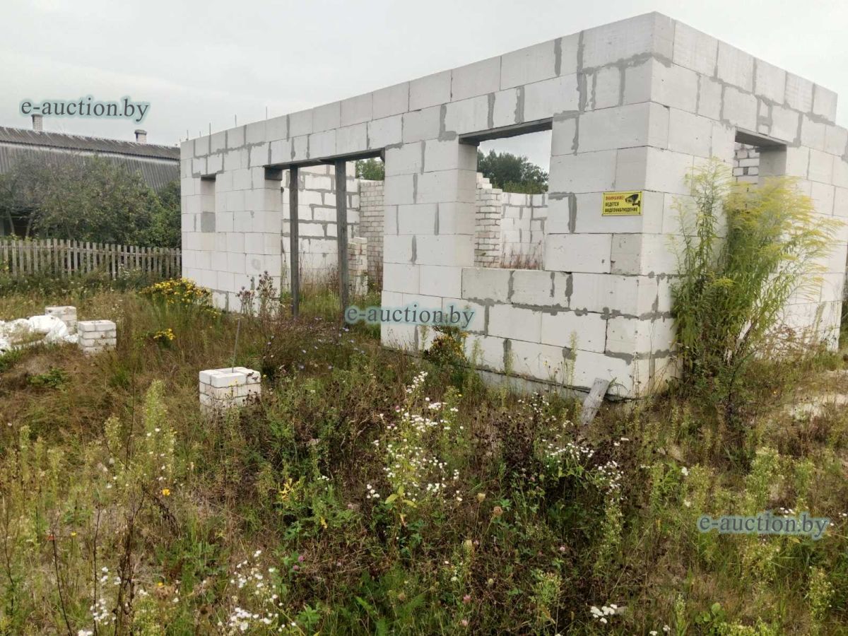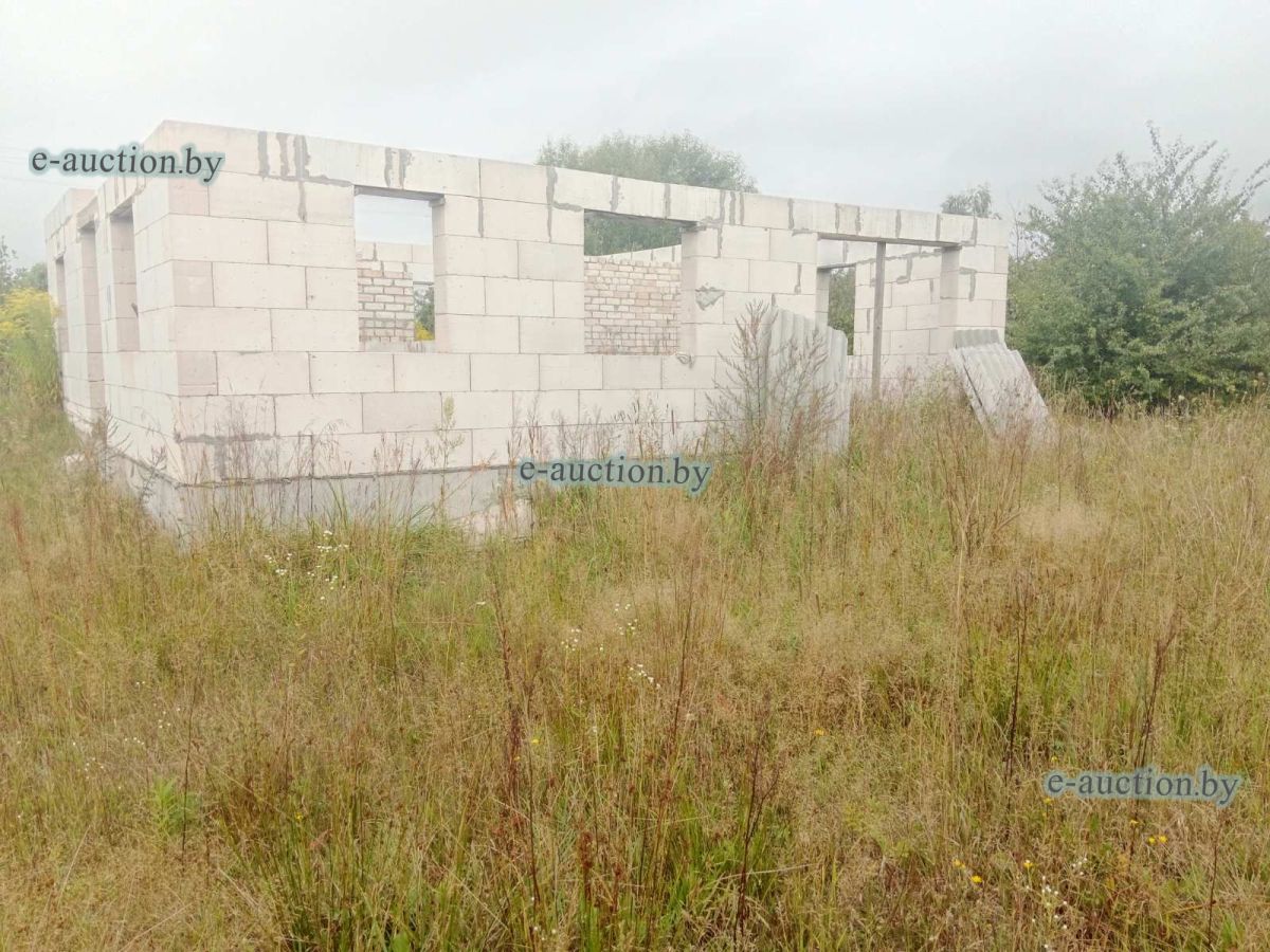 Лот представляет собой объект недвижимости в составе капитального строения и земельного участка. Сведения о капитальном строении: Наименование: Незавершенное законсервированное капитальное строение (согласно ведомости технических характеристик наименование объекта - Незавершенное незаконсервированное капитальное строение); Назначение: Здание неустановленного назначения; Право собственности: Гражданин Республики Беларусь. Сведения о земельном участке: Площадь: 0.2163 га, Кадастровый номер: 121283700601000377; Право собственности: Гражданин Республики Беларусь. Примечания: Наружная площадь - 81 кв.м. Готовность строения - 8 %. |