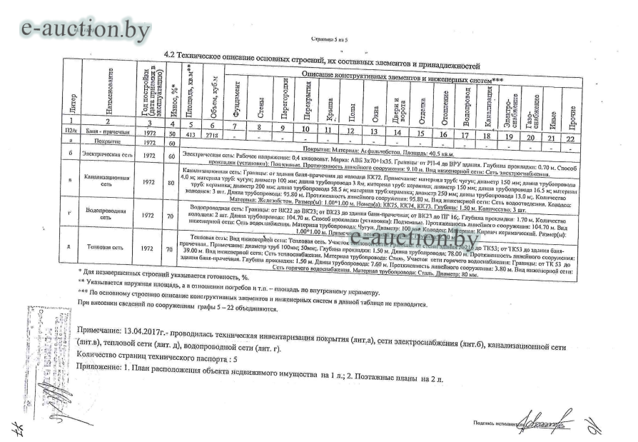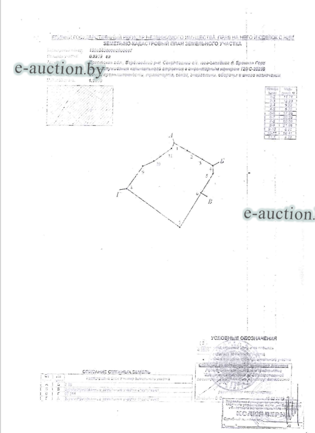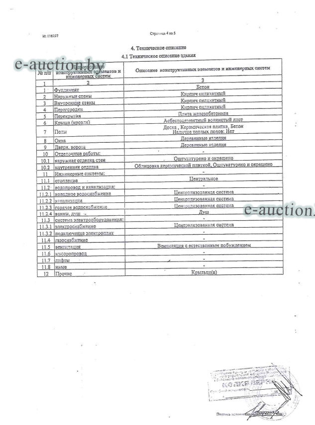 | Обременения: | Запрещение покупателю отчуждения имущества до выполнения условий договора купли-продажи (пп.1.2 п.1 Указа Президента Республики Беларусь от 27.02.2007 № 108 "О некоторых мерах по вовлечению в хозяйственный оборот неиспользуемого государственного имущества", пп.6.20 п.6 Указа Президента Республики Беларусь от 04.07.2012 № 294 "О порядке распоряжения государственным имуществом"). Запрет на совершение регистрационных действий судебного исполнителя. Арест судебного исполнителя. |