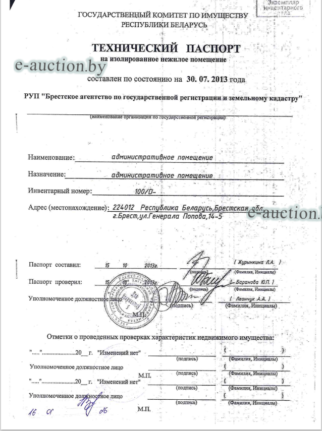 | Местоположение имущества | г. Брест, ул. Генерала Попова, д. 14-5 |