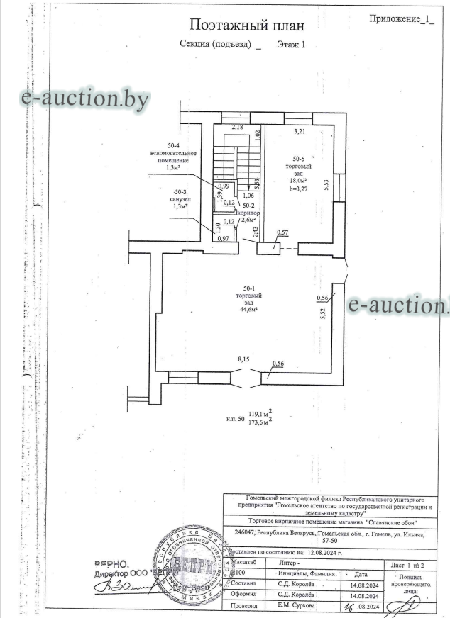 Сведения об изолированном помещении или машино-месте: Наименование: Торговое кирпичное помещение магазина "Славянские обои"; Назначение: Торговое помещение; Право собственности: Общество с ограниченной ответственностью "БЕПРИ". Согласно исполнительному документу экономического суда Гомельской области от 11.07.2025 №153ЭПП253092 общая площадь составляет 174,1 кв.м. |