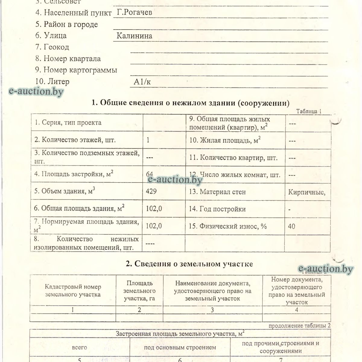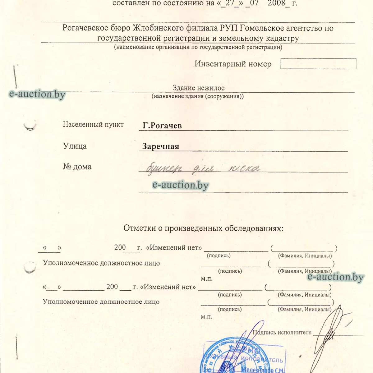 | Местоположение имущества | Гомельская область, Рогачевский р-н, г. Рогачев, ул. Заречная |