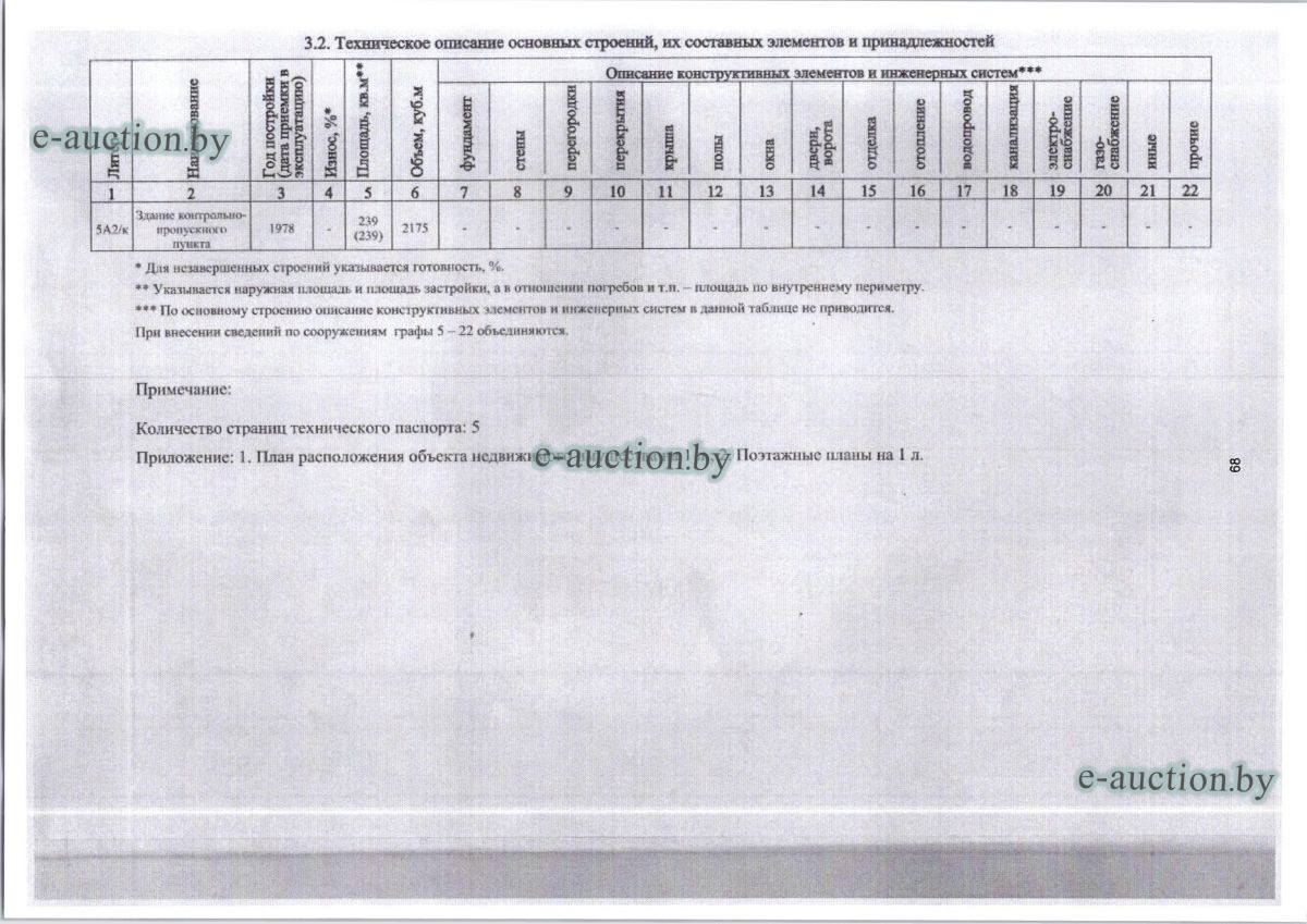 Сведения о капитальном строении: Наименование: контрольно-пропускной пункт Назначение: Здание административно-хозяйственное Составные части и принадлежности: сведения отсутствуют Сведения о земельном участке: Кадастровый номер земельного участка, на котором расположено капитальное строение: 324386400001000118 площадью 3.4005 га (право постоянного пользования) Отдельный земельный участок для обслуживания строения не выделен. |
