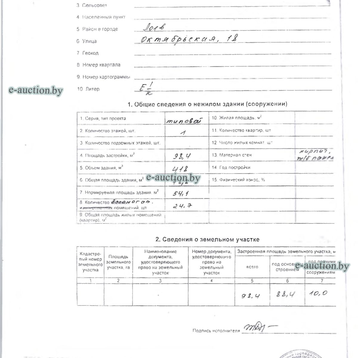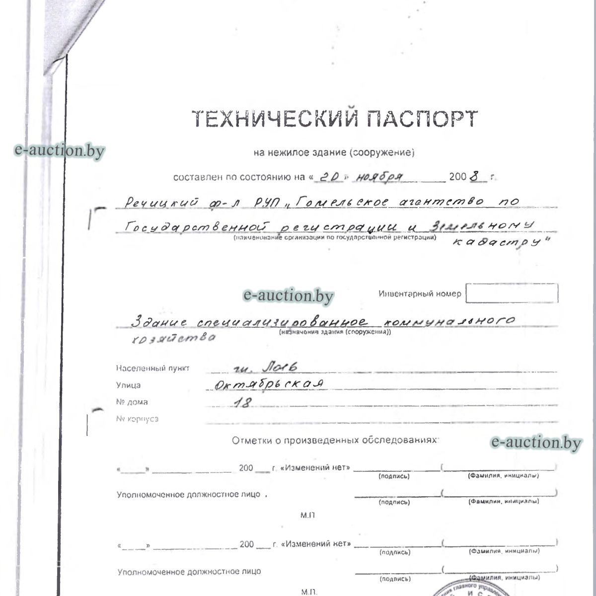 | Местоположение имущества | Гомельская область, Лоевский р-н, гп Лоев, ул. Октябрьская, 18 |