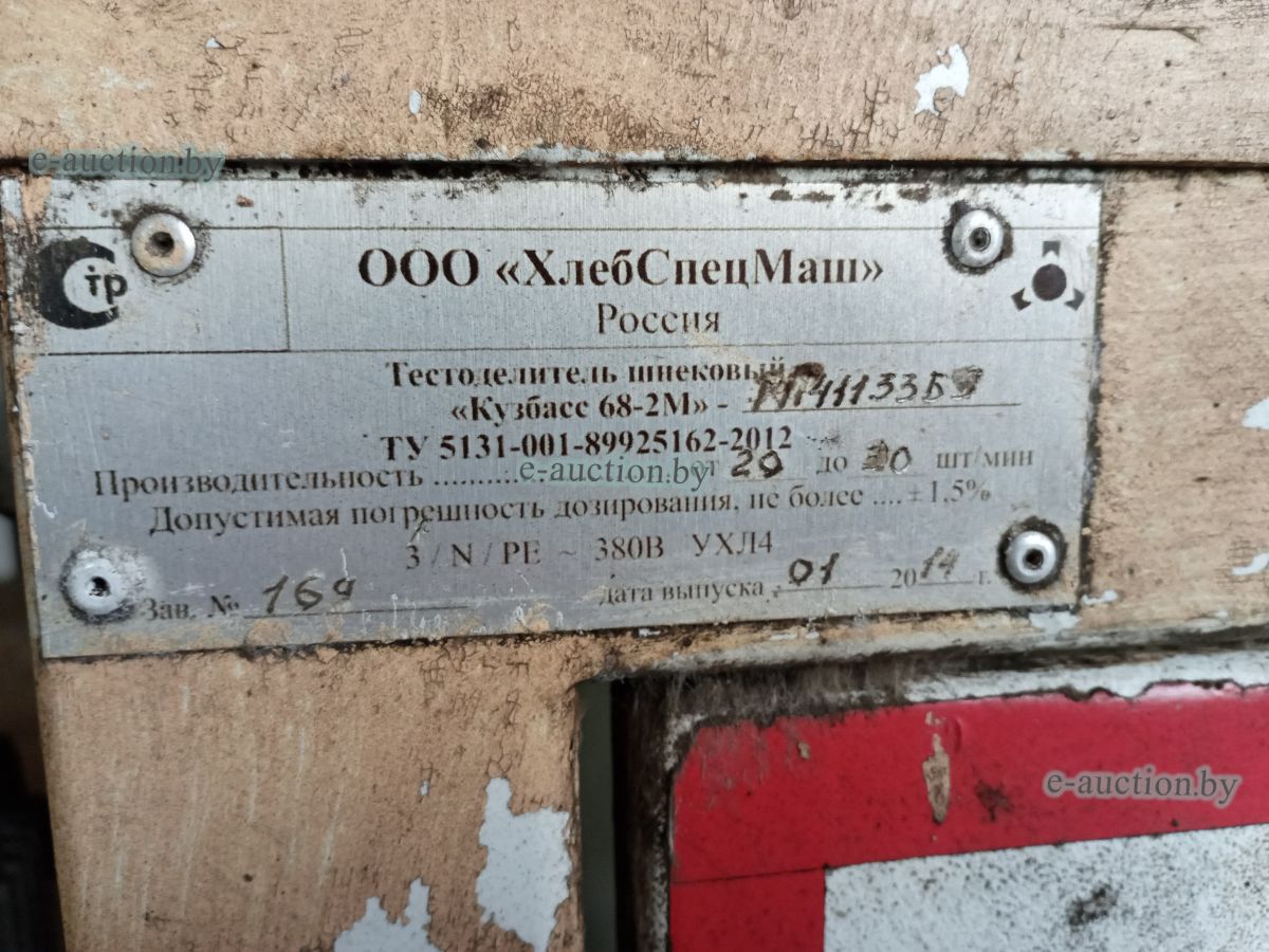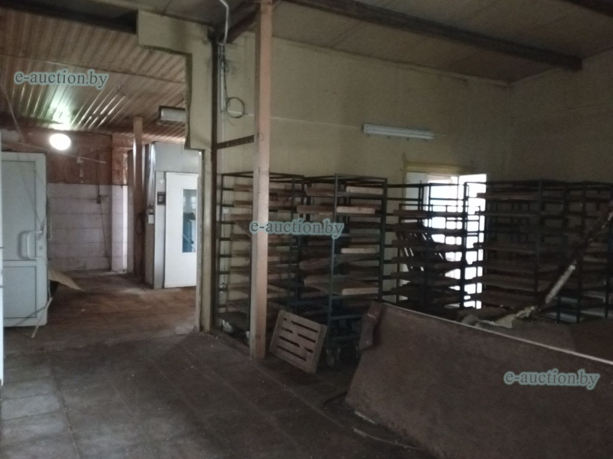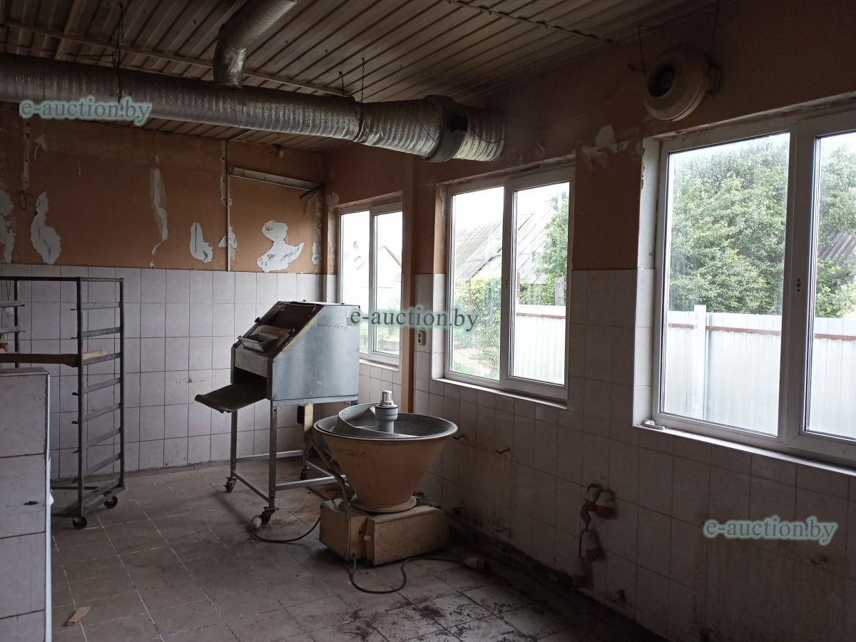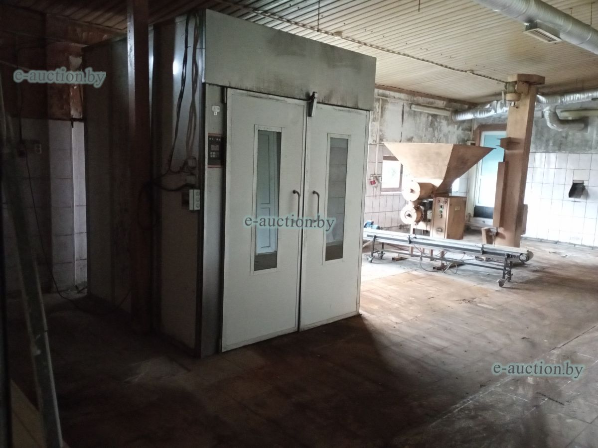 Сведения о капитальном строении Наименование: Кондитерский цех Коммуникации: электроснабжение, центральное отопление, водопровод, горячее водоснабжение - автономная система. Строение не зарегистрировано, земельный участок не выделялся. Право собственности: Государственное унитарное коммунальное дочернее строительное предприятие "Круглянская ПМК №266" Продаётся вместе с оборудованием: - Тумба металлическая (инв. №1862) 1 ед. - Машина для просеивания муки МПМ-800М 1 ед. (инв. №2372); - Шкаф с глухой дверью низкотемпературный 1 ед. (инв. №2063); - Тестоокруглитель Т1-ХТН 1 ед. (инв. №2660); - Хлеборезательная машина EVA Junior42 №6016 1 ед. (инв. №2588); - Машина тестомесительная ТММ-330 1 ед. (инв. № 2091); - Машина упаковочная DIBIPAK 3246 EVX 1 ед. (инв. №2492); - Дежеопрокидыватель А2-ХП2Д-2 1 ед. (инв. №2195); - Тестоотделитель КУЗБАСС 68-2М модель 68-4м 1 ед. (инв.№2196); - Печь электрическая LFM 4T-6040-V20H 3-х ярусная 1 ед. (инв. № 1829); - Ротационная печь STREAM LFRNKE 60*80 1 ед. (инв. №1830); - Багетоформовочная машина SM 380S 1 ед. (инв. №1832); - Расстоильная камера КИМА KCF-04 1 ед. (инв. №2251); - Мукопросеиватель «Каскад» 1 ед. (инв. №1834); - Тестотделитель-округлитель SPA30TA 1 ед. (инв. №1835); - Измельчитель сухарей МАС 100 1 ед. (инв. №1837); - Стол охлаждаемый SNACK 3100 TN 1 ед. (инв. №1845); - Стол охлаждаемый SNACK TN 1 ед. (инв. № 1846); - Шкаф холодильный серии «Распсодия» 700М 1 ед. (инв. №1851); - Шкаф холодильный серии «Распсодия» 700М 1 ед. (инв. №1852); - Вывеска «Кондитерский цех» 1 ед. - Тележка для хлеба 20 ед. |