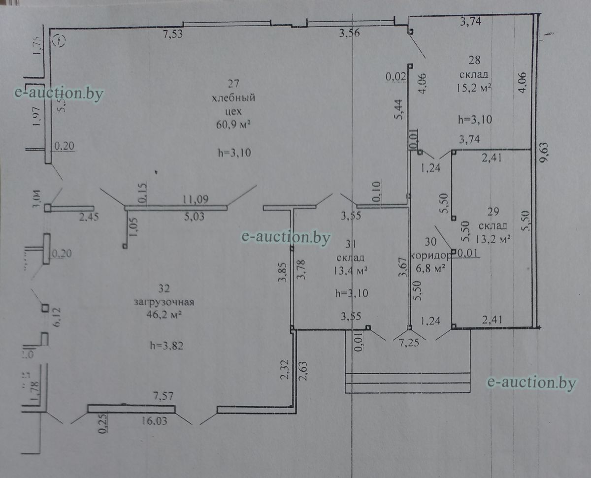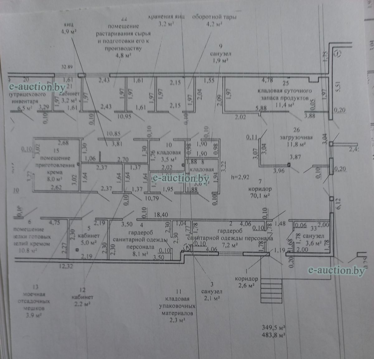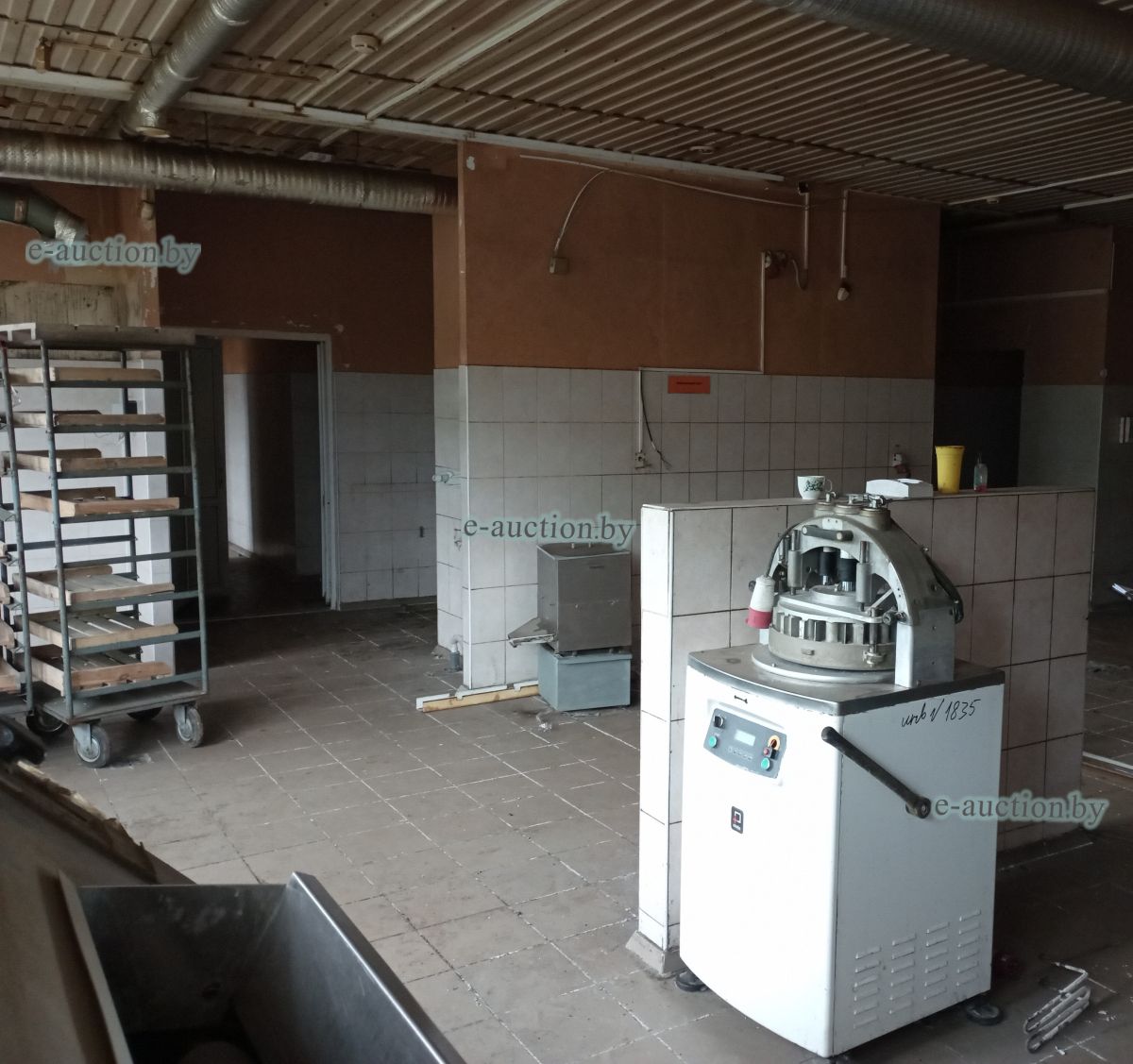Сведения о капитальном строении Наименование: Кондитерский цех Коммуникации: электроснабжение, центральное отопление, водопровод, горячее водоснабжение - автономная система. Строение не зарегистрировано, земельный участок не выделялся. Право собственности: Государственное унитарное коммунальное дочернее строительное предприятие "Круглянская ПМК №266" Продаётся вместе с оборудованием: - Тумба металлическая (инв. №1862) 1 ед. - Машина для просеивания муки МПМ-800М 1 ед. (инв. №2372); - Шкаф с глухой дверью низкотемпературный 1 ед. (инв. №2063); - Тестоокруглитель Т1-ХТН 1 ед. (инв. №2660); - Хлеборезательная машина EVA Junior42 №6016 1 ед. (инв. №2588); - Машина тестомесительная ТММ-330 1 ед. (инв. № 2091); - Машина упаковочная DIBIPAK 3246 EVX 1 ед. (инв. №2492); - Дежеопрокидыватель А2-ХП2Д-2 1 ед. (инв. №2195); - Тестоотделитель КУЗБАСС 68-2М модель 68-4м 1 ед. (инв.№2196); - Печь электрическая LFM 4T-6040-V20H 3-х ярусная 1 ед. (инв. № 1829); - Ротационная печь STREAM LFRNKE 60*80 1 ед. (инв. №1830); - Багетоформовочная машина SM 380S 1 ед. (инв. №1832); - Расстоильная камера КИМА KCF-04 1 ед. (инв. №2251); - Мукопросеиватель «Каскад» 1 ед. (инв. №1834); - Тестотделитель-округлитель SPA30TA 1 ед. (инв. №1835); - Измельчитель сухарей МАС 100 1 ед. (инв. №1837); - Стол охлаждаемый SNACK 3100 TN 1 ед. (инв. №1845); - Стол охлаждаемый SNACK TN 1 ед. (инв. № 1846); - Шкаф холодильный серии «Распсодия» 700М 1 ед. (инв. №1851); - Шкаф холодильный серии «Распсодия» 700М 1 ед. (инв. №1852); - Вывеска «Кондитерский цех» 1 ед. - Тележка для хлеба 20 ед. |