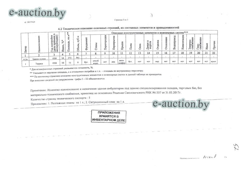 | Обременения: | Запрет совершения регистрационных действий судебного исполнителя. Запрещение покупателю отчуждения имущества до выполнения условий договора купли продажи (пп. 6.20 п. 6 Указа Президента Республики Беларусь от 04.07.2012 № 294 "О порядке распоряжения государственным имуществом"). |