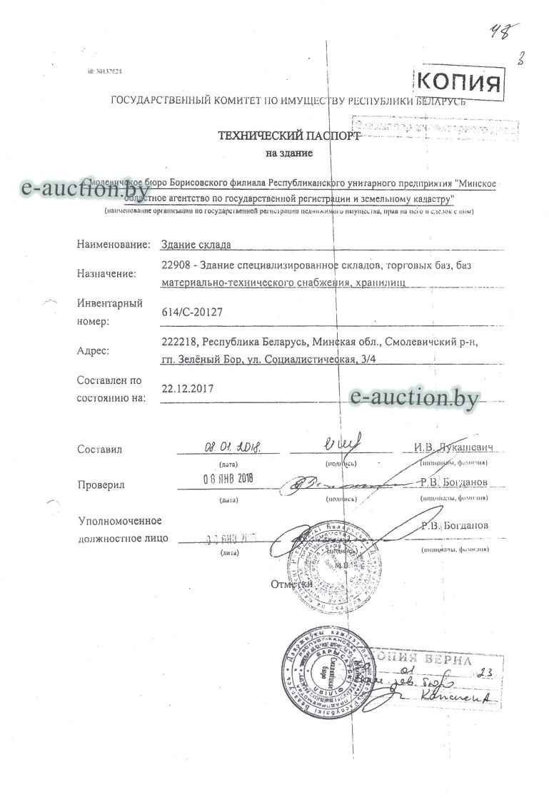 | Местоположение имущества | Минская область, Смолевичский р-н, гп Зеленый Бор, ул. Социалистическая, д. 3/4 |