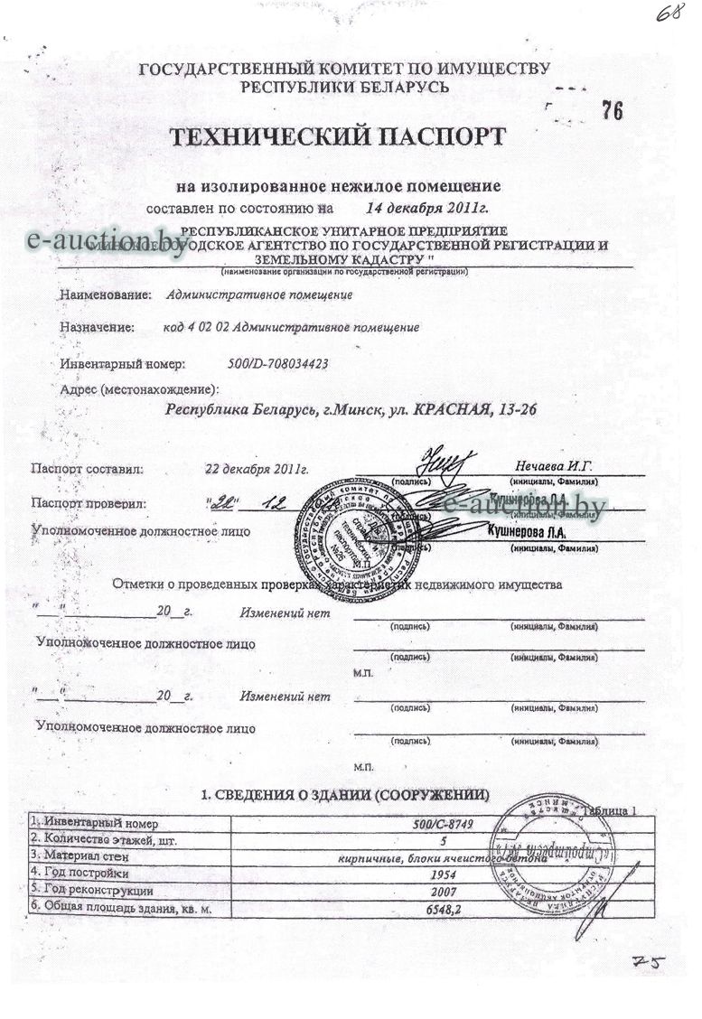 | Местоположение имущества | г. Минск, ул. Красная, 13-26 |
