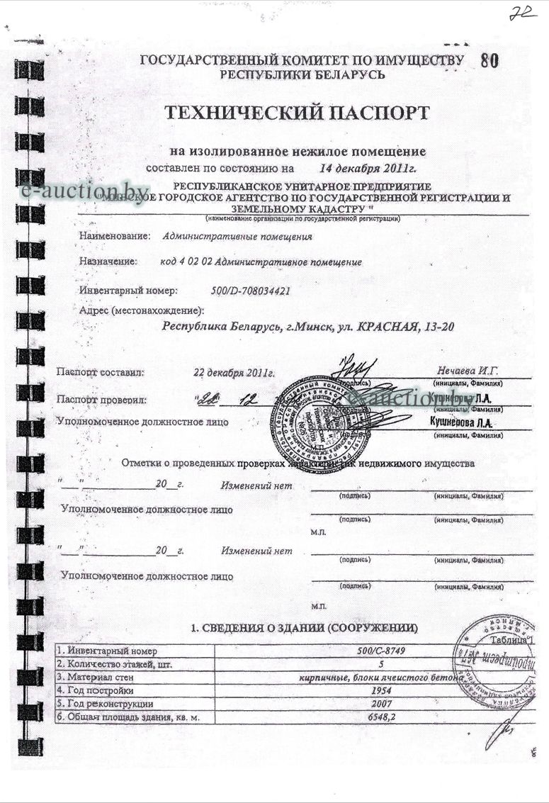 | Местоположение имущества | г. Минск, ул. Красная, 13-20 |