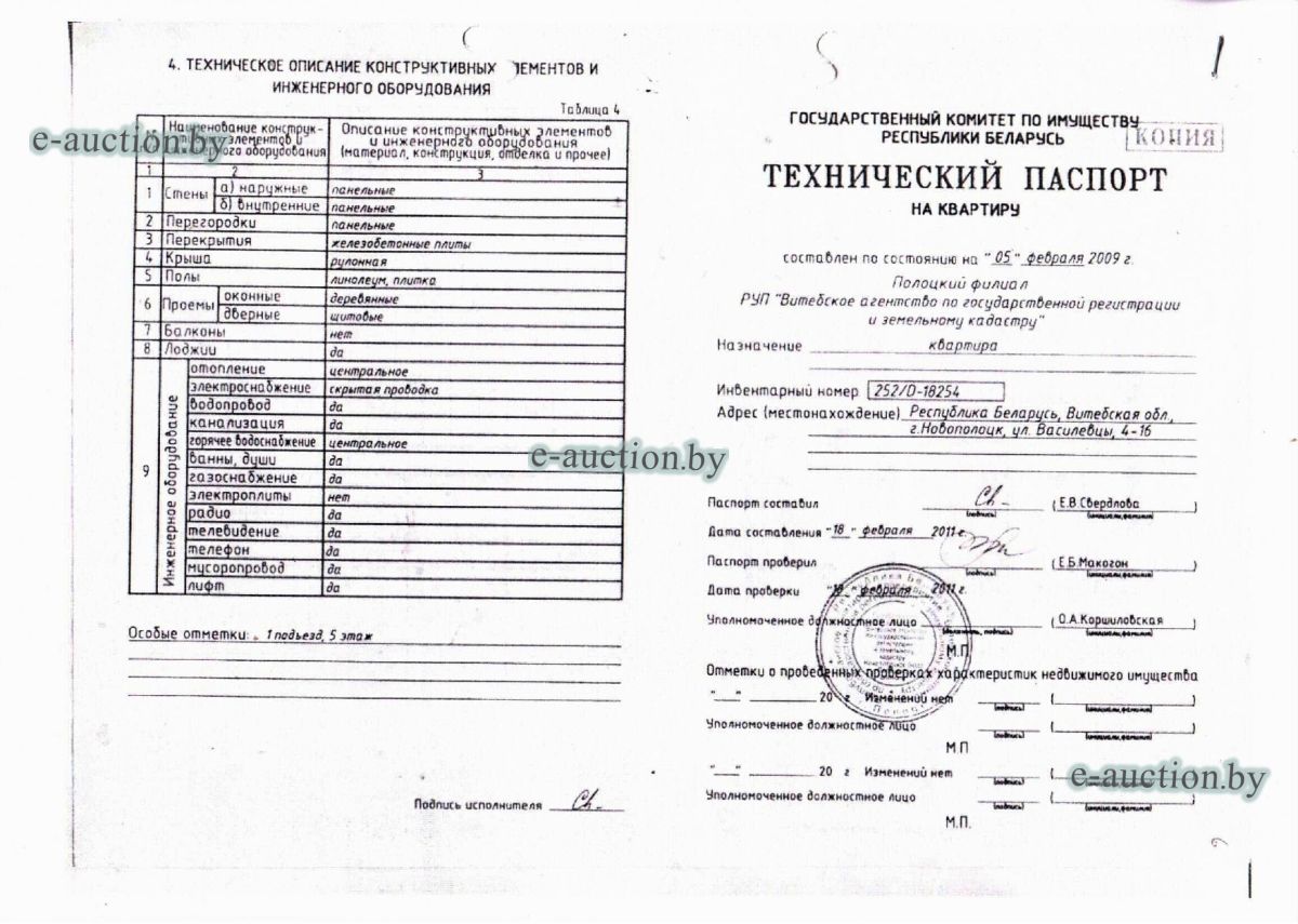 | Местоположение имущества | Витебская область, г. Новополоцк, ул. Василевцы, д. 4, кв. 16 |