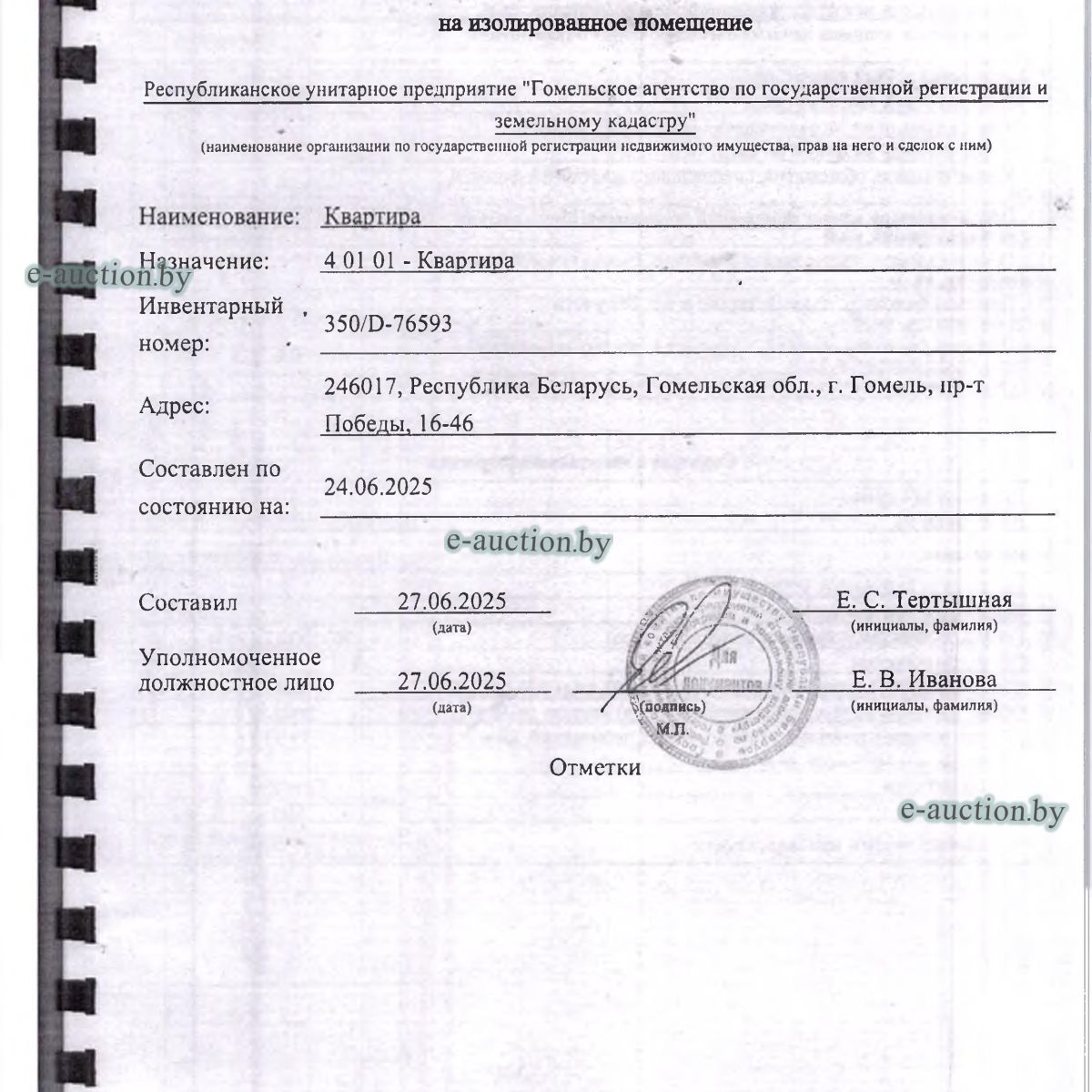 | Местоположение имущества | г. Гомель, пр-т Победы, 16-46 |