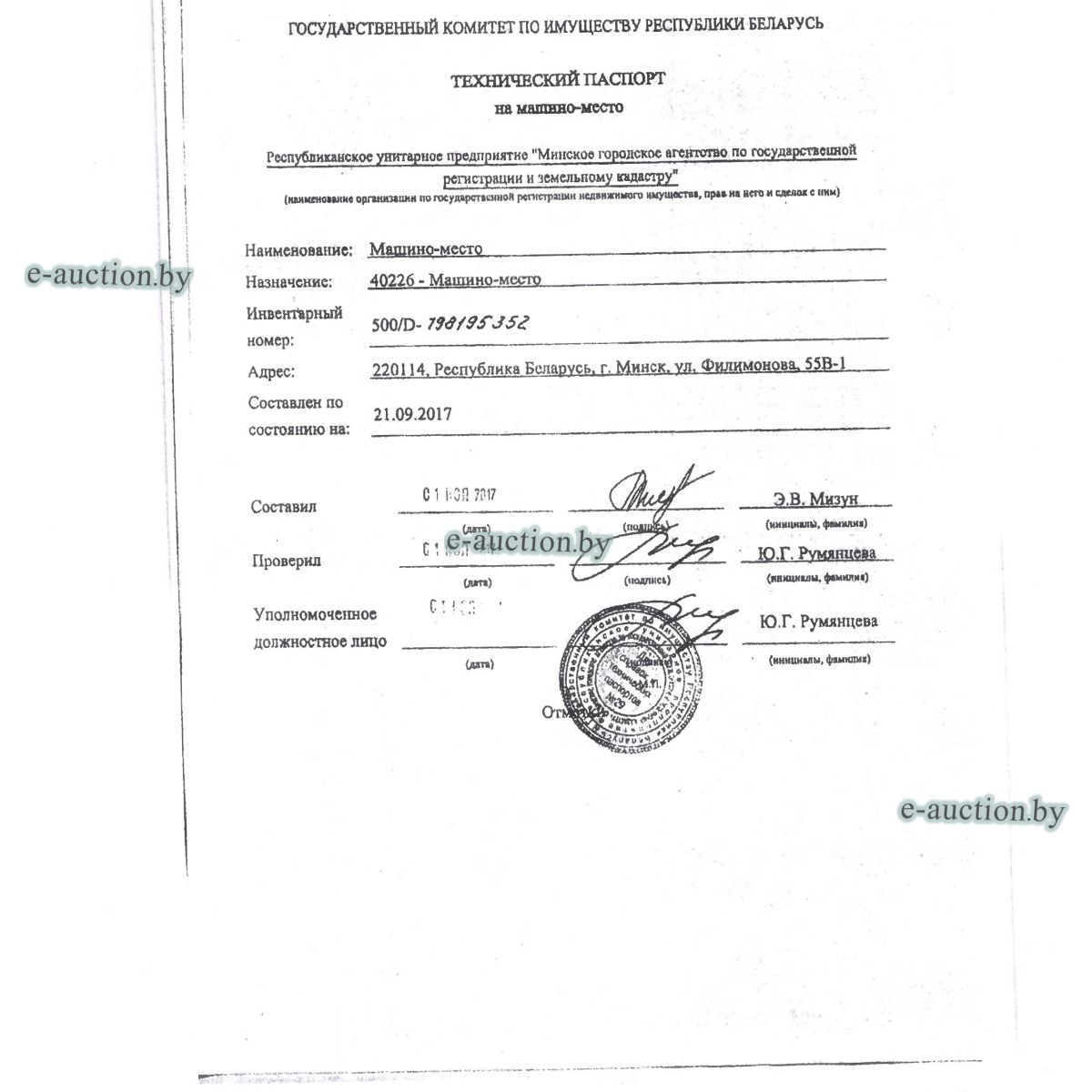 | Адрес организатора аукциона | 220069, г. Минск, пр-т Дзержинского, 1Б |
