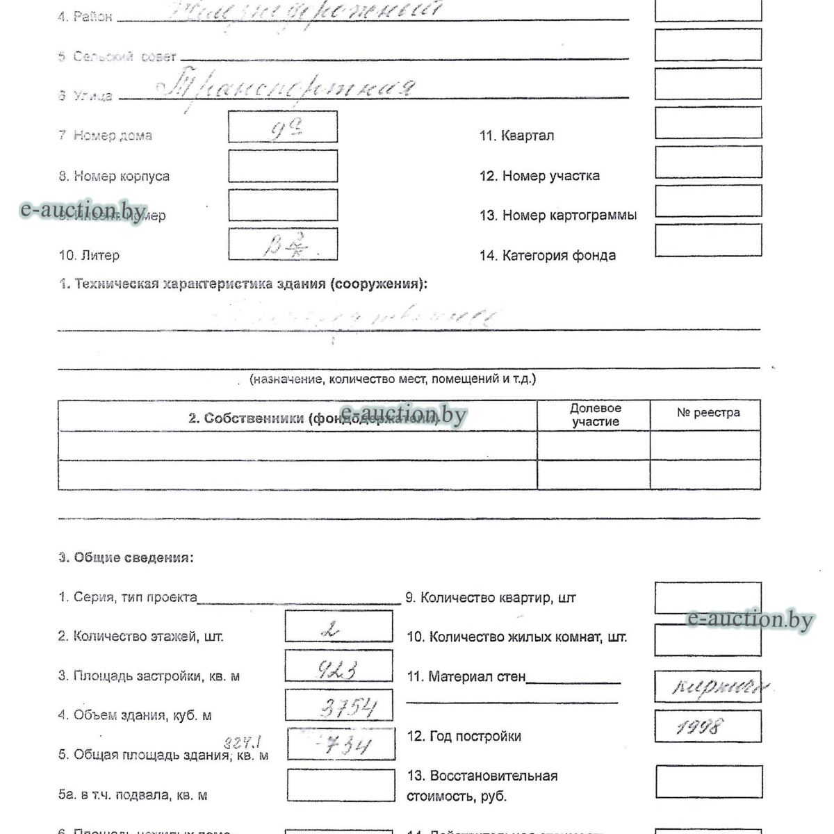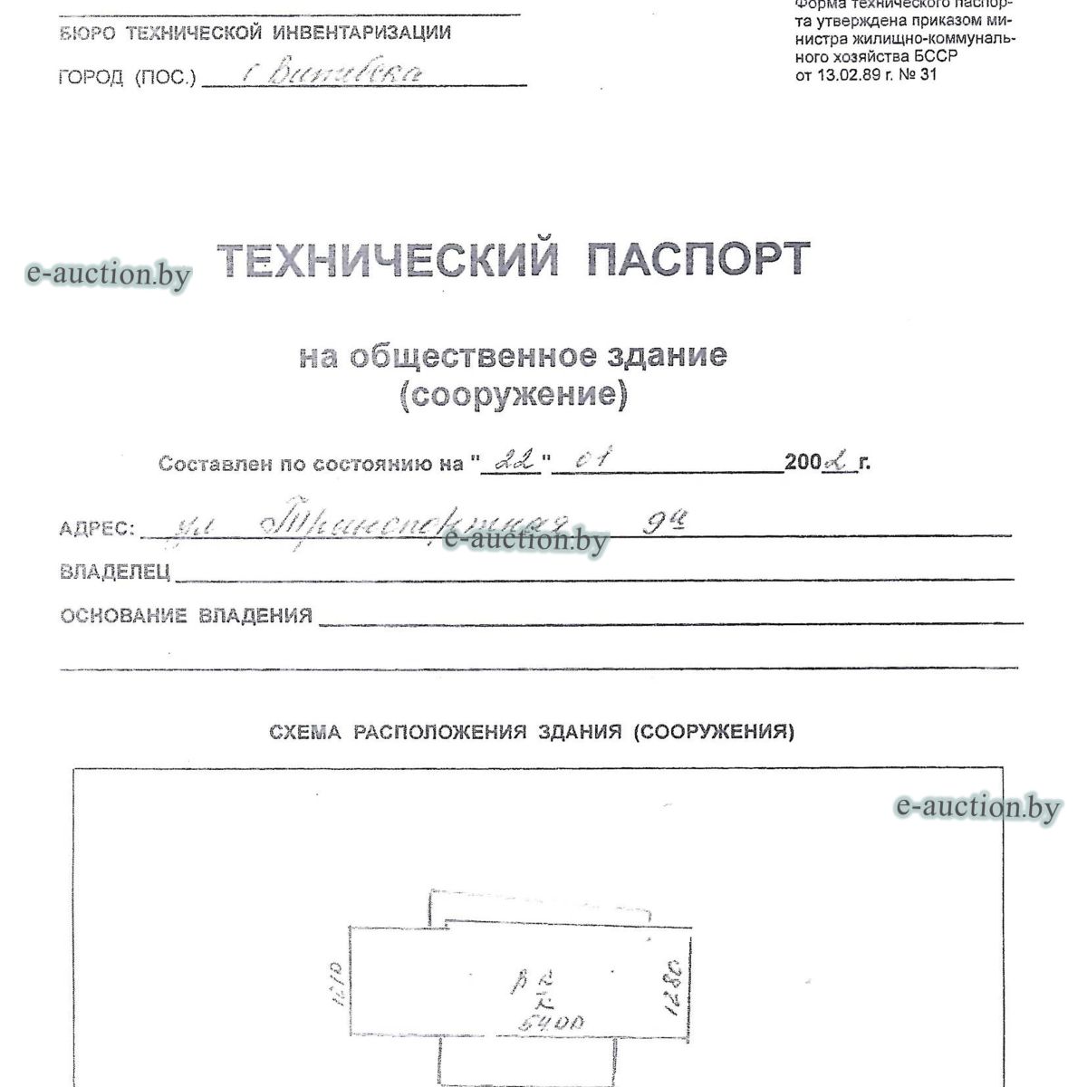 | Местоположение имущества | г. Витебск, ул. Транспортная, 9А |