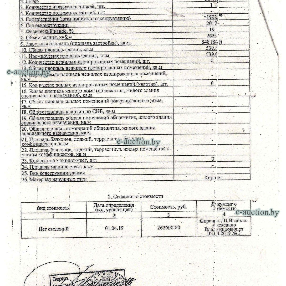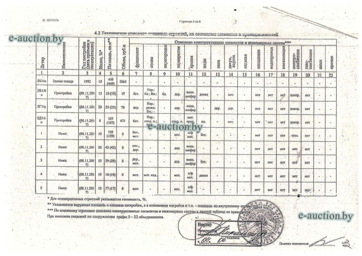Сведения о капитальном строении: Наименование: здание склада с холодильными камерами Назначение: Здание специализированное складов, торговых баз, баз материально-технического снабжения, хранилищ Составные части и принадлежности: здание склада смешанной конструкции (кирпич, металл), блочная дощатая пристройки, пристройка из сэндвич-панелей, пять навесов. Сведения о земельном участке: Кадастровый номер земельного участка, на котором расположено капитальное строение: 340100000007000273 площадью 1.9245 га (право аренды 39/50 долей). Отдельный земельный участок для обслуживания строения не выделен. Здание продается без дополнительного холодильного оборудования. |