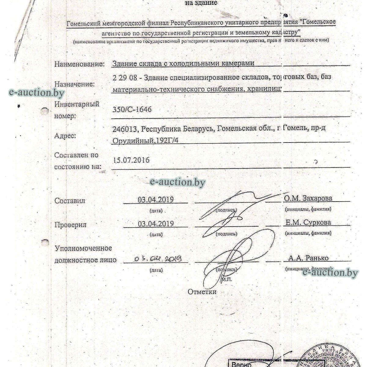 | Адрес организатора аукциона | 246007, г. Гомель, ул. Троллейбусная, 6 |