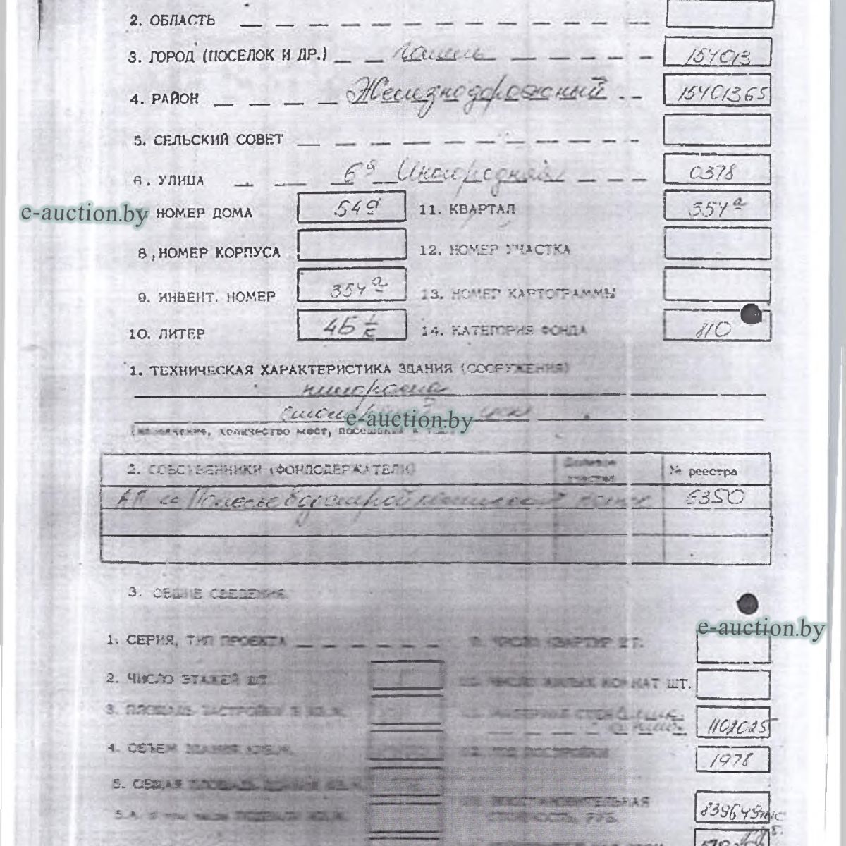 | Местоположение имущества | г. Гомель, ул. Иногородняя 6-я, 54А |