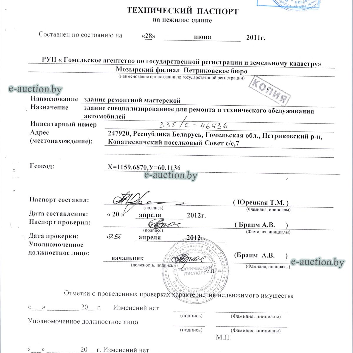 | Адрес организатора аукциона | 246007, г. Гомель, ул. Троллейбусная, 6 |