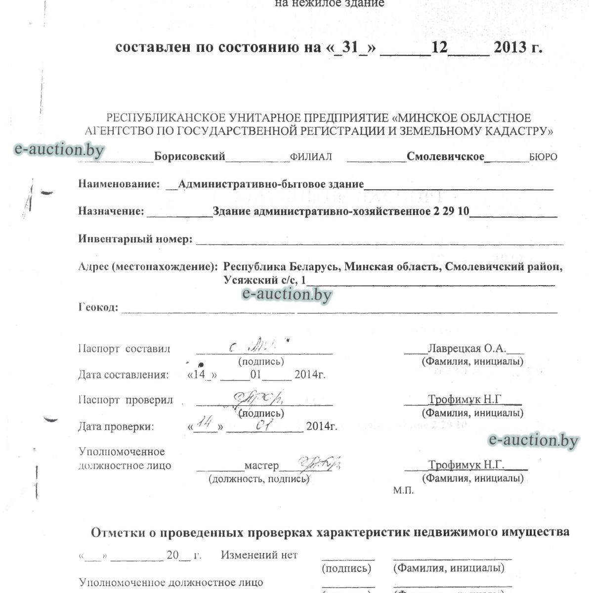 | Местоположение имущества | Минская область, Смолевичский р-н, Усяжский с/с, 1 |