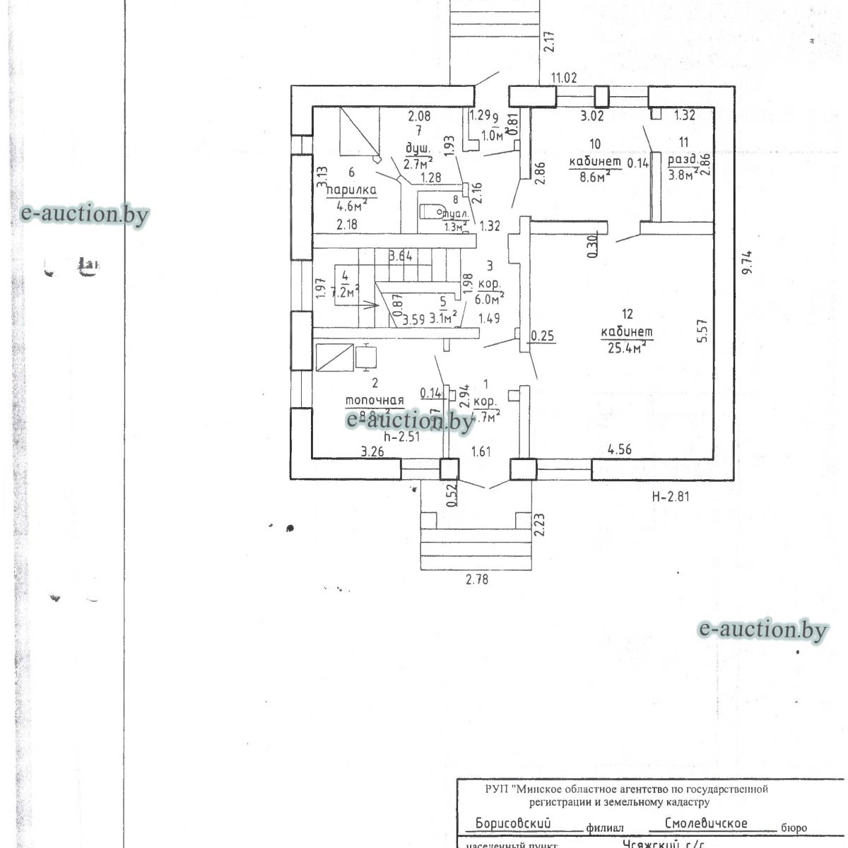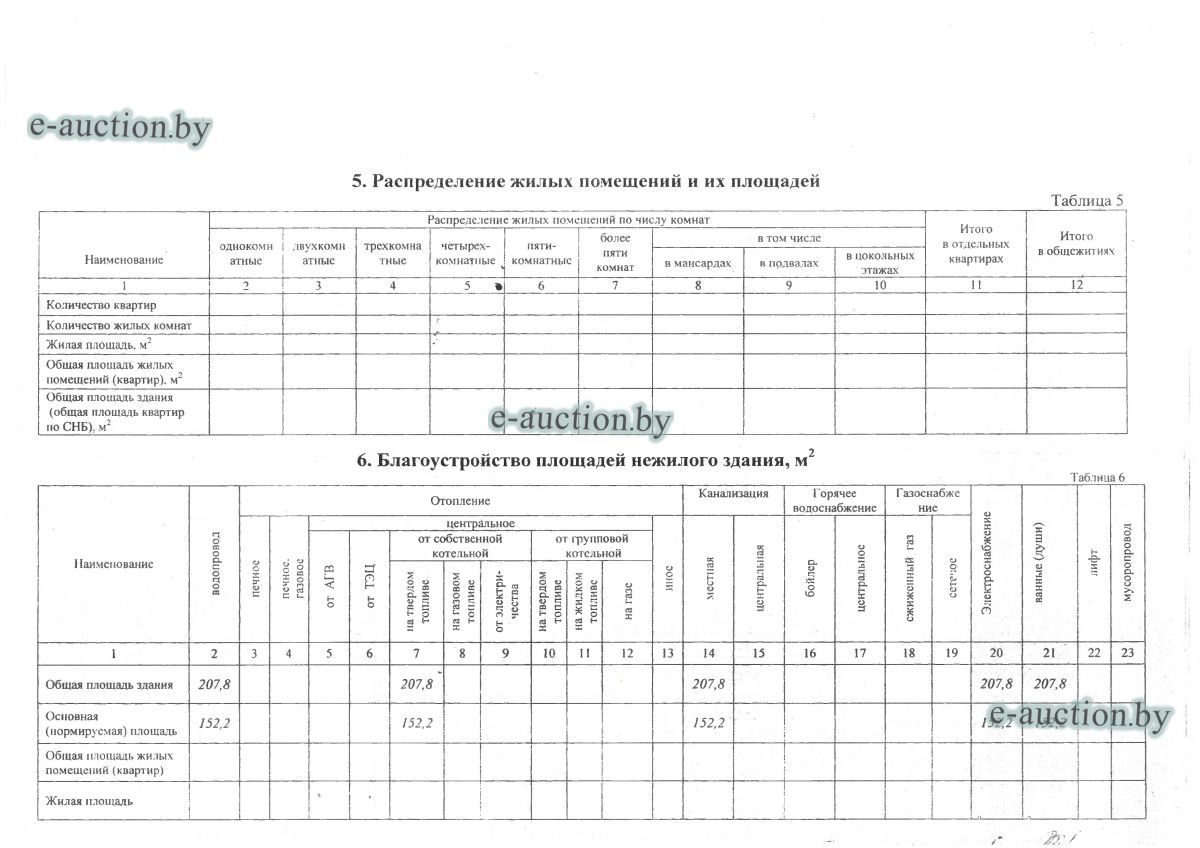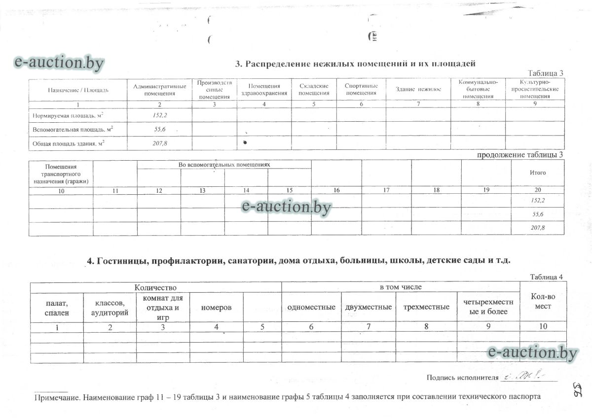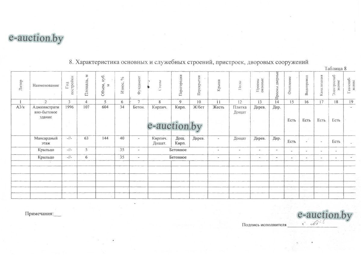 Сведения о капитальном строении из ЕГРНИ: Наименование: административно-бытовое здание; Назначение: здание административно-хозяйственное; Составные части и принадлежности: трехэтажное включая мансардный этаж кирпичное административно-бытовое здание, крыльцо, крыльцо (А3/к). Принадлежит должнику на праве собственности. Расположено на земельном участке с кад. № 624800000001002303 площадью 0.8144 га (право аренды - доля: 91/100). Отдельный земельный участок под обслуживание капитального строения не выделен. Ограничения (обременения) прав на земельные участки, расположенные в охранных зонах линий электропередачи, площадь 0.0125 га. Ограничения (обременения) прав на земельные участки, расположенные в охранных зонах линий электропередачи, площадь 0.0395 га. Минским областным исполнительным комитетом в целях упорядочения дальнейшего использования объектов недвижимости, реализуемых с аукционов (электронных торгов), принято решение от 15.11.2023 № 1119. В соответствии с решением необходимо обеспечить для случаев реализации объектов недвижимости, а именно: капитальные строения (здание, сооружения), незавершенные законсервированные и незаконсервированные капитальные строения, находящиеся в собственности Минской области, собственности ее административно-территориальных единиц, собственности хозяйственных обществ (товариществ), в уставных фондах которых более 50 процентов акций (долей) находятся в собственности Минской области и (или) ее административно-территориальных единиц, с аукционов (электронных торгов) в исполнительном производстве обязательными следующие условия: - обеспечение безопасности и ограничение доступа на недвижимое имущество с даты подписания акта о приемке-передаче; - использование земельного участка и объекта недвижимости в соответствии с назначением, определенным райгорисполкомами; - поддержание надлежащего санитарного, технического состояния объекта недвижимости и земельного участка; - срок начала и период проведения реконструкции объектов недвижимости (при необходимости ее проведения) и (или) возведения недвижимого имущества после сноса приобретенного объекта недвижимости либо сноса отдельных объектов, входящих в состав приобретенного объекта недвижимости, которые не могут быть использованы; - срок завершения строительства незавершенных законсервированных и незаконсервированных капитальных строений. |