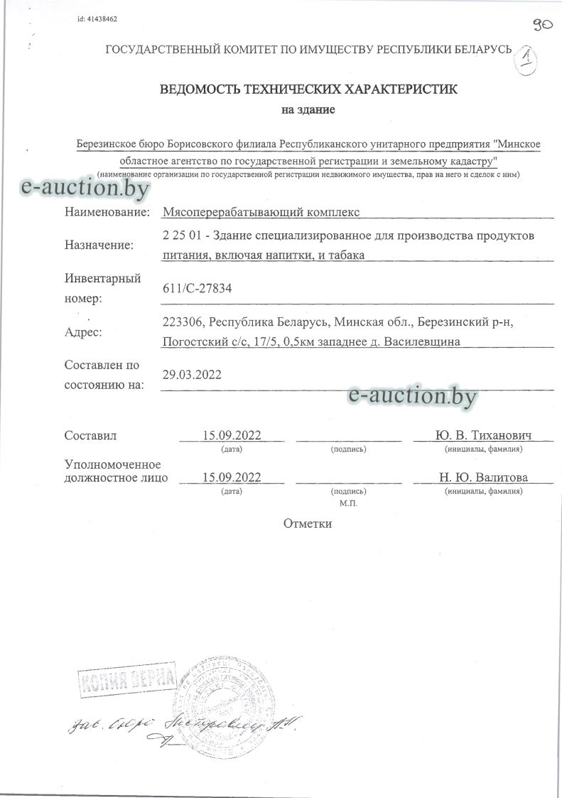 | Местоположение имущества | Минская область, Березинский р-н, Погостский с/с, 17/5, 0,5 км. западнее д.Василевщина |
