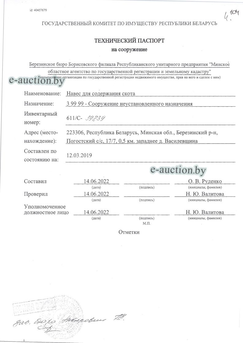 | Местоположение имущества | Минская область, Березинский р-н, Погостский с/с, 17/7, 0,5 кс. западнее д.Василевщина |