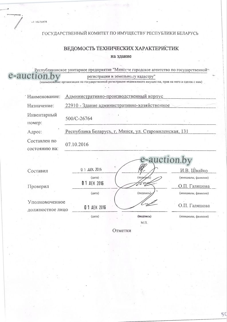 | Местоположение имущества | г. Минск, ул. Старовиленская, д.131 |