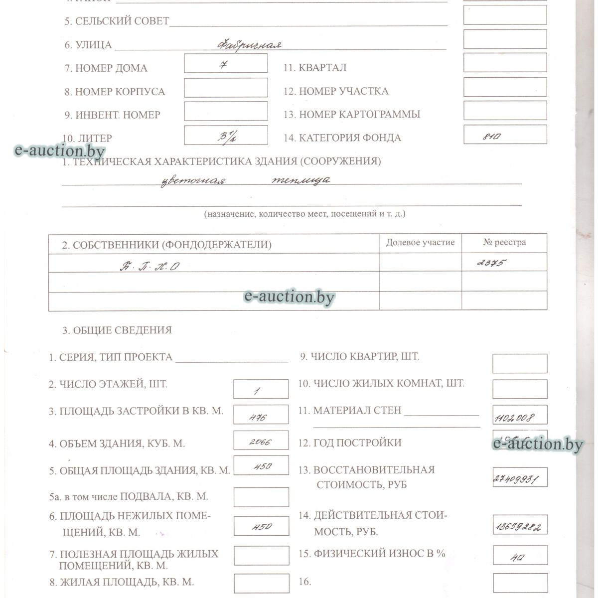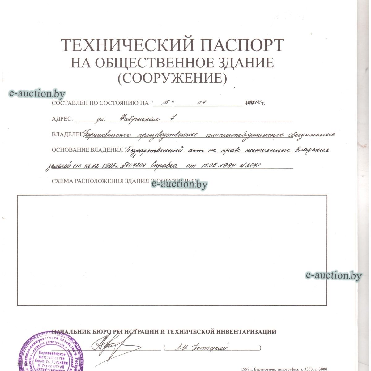 | Местоположение имущества | Брестская область, Барановичский р-н, г. Барановичи, ул. Фабричная, 7Б/8 |