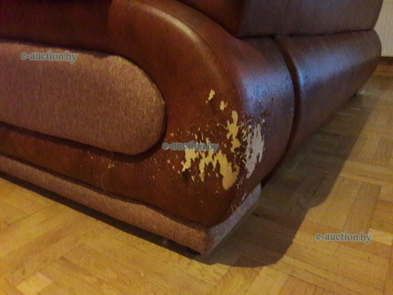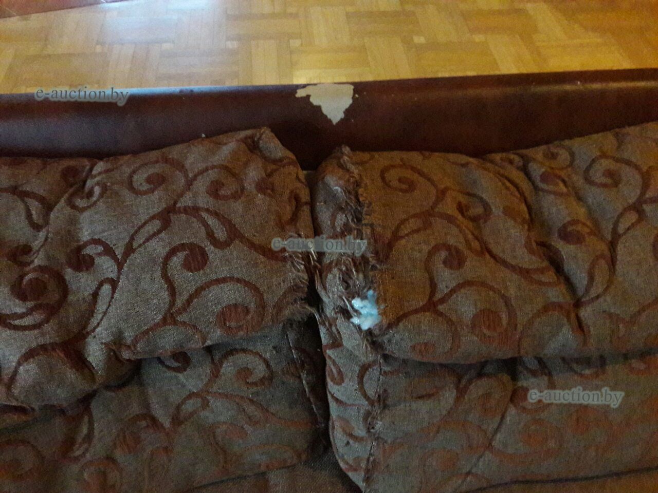 | Б/у, основание - ткань, боковины - кожзаменитель. Имеются повреждения ткани и потертости кожзаменителя. | |