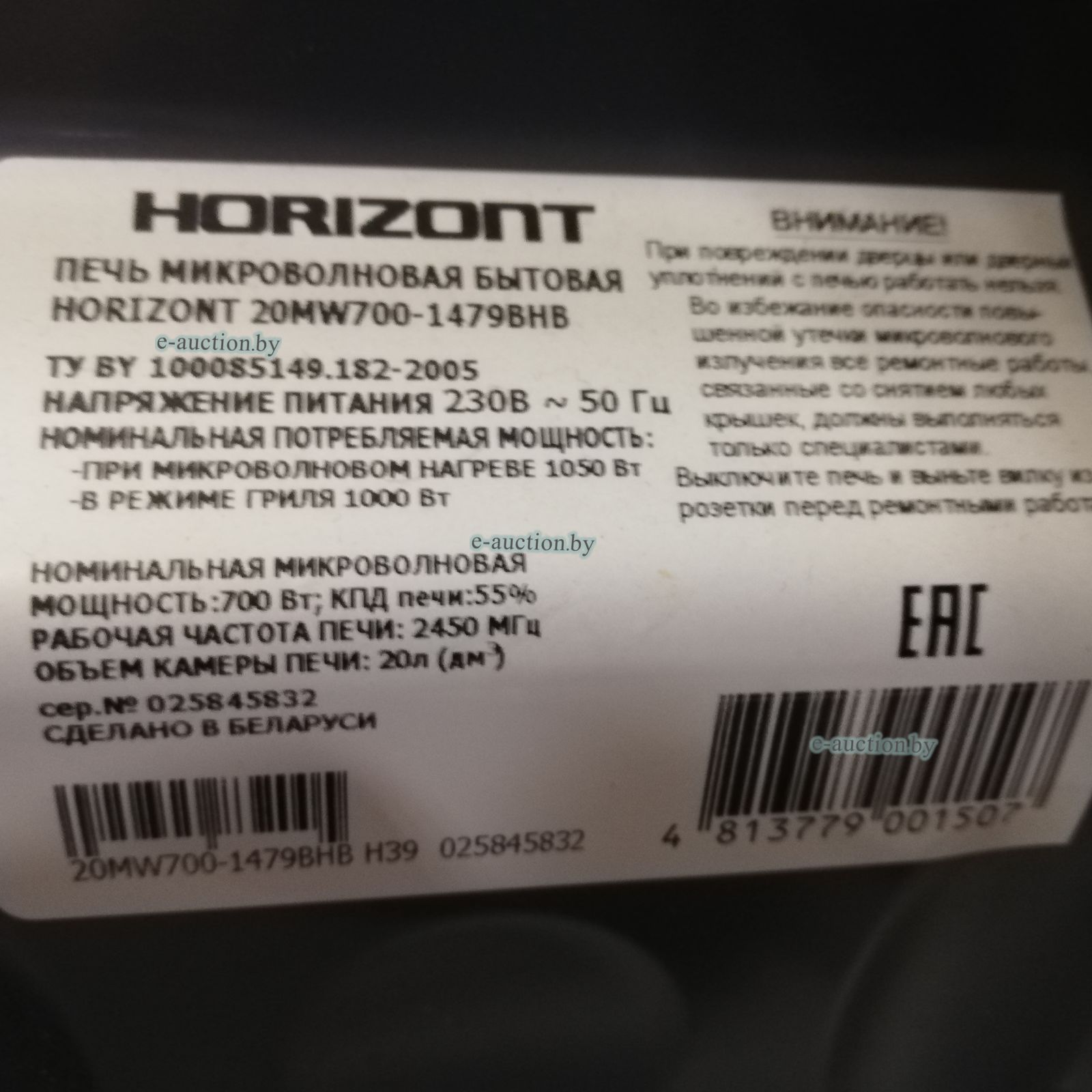 Микроволновая печь HORIZONT